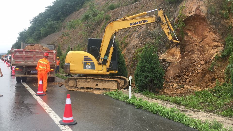 单位:路产安全科 养护工程科 发布时间:2020-07-21“监控中心,我们是洛栾高速路养联合巡查人员,巡查至K122+580上行时,发现边坡塌方,落石滑落至路肩及行车道,严重影响行车安全,已设置安全区,请求启动防汛抢险应急预案实施道路抢险”。
