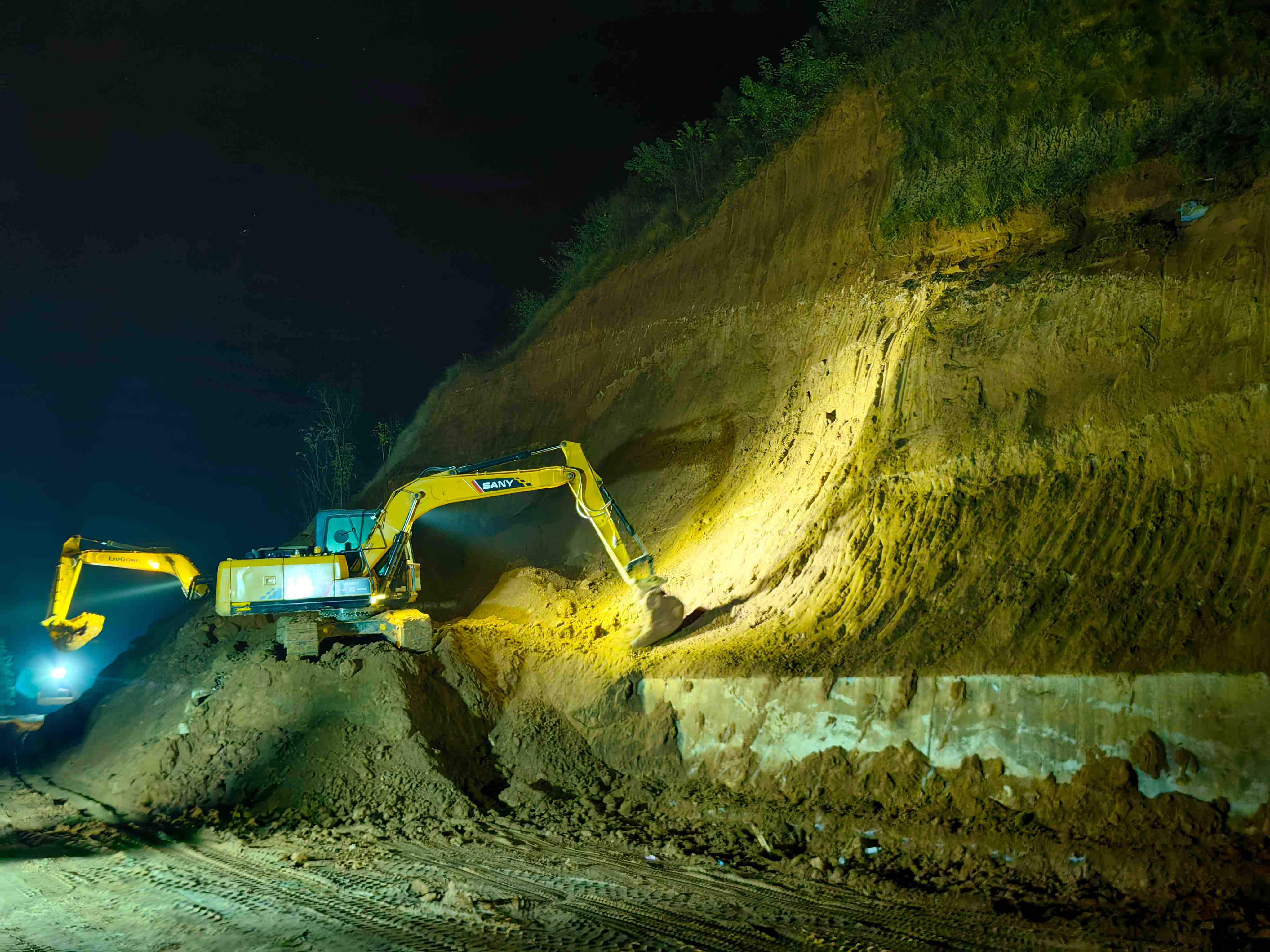 洛阳分公司在接到险情通知后第一时间启动应急预案,养护、收费、路产部门立即行动,在收费站对上站车辆进行劝返保通,协调挖掘机、装载机清理塌方作业迅速开展抢险救援工作。塌方体在清理过程中一直持续发展,对抢险工作造成一定难度,各部门不遗余力,累计投入挖掘机12台班,长臂挖掘机2台班,装载机9台班,运输车24台班,抢险人工169工日,工具车15个台班,保通人员50余人,经过一天一夜奋战全力将塌方土体清理完毕,并利用高压水枪将污染路面进行清理,摆放警示牌、砂袋和锥形标提醒过往司乘人员。17日10时,现场通过高速交警和各部门共同验收后解除封闭,恢复交通。