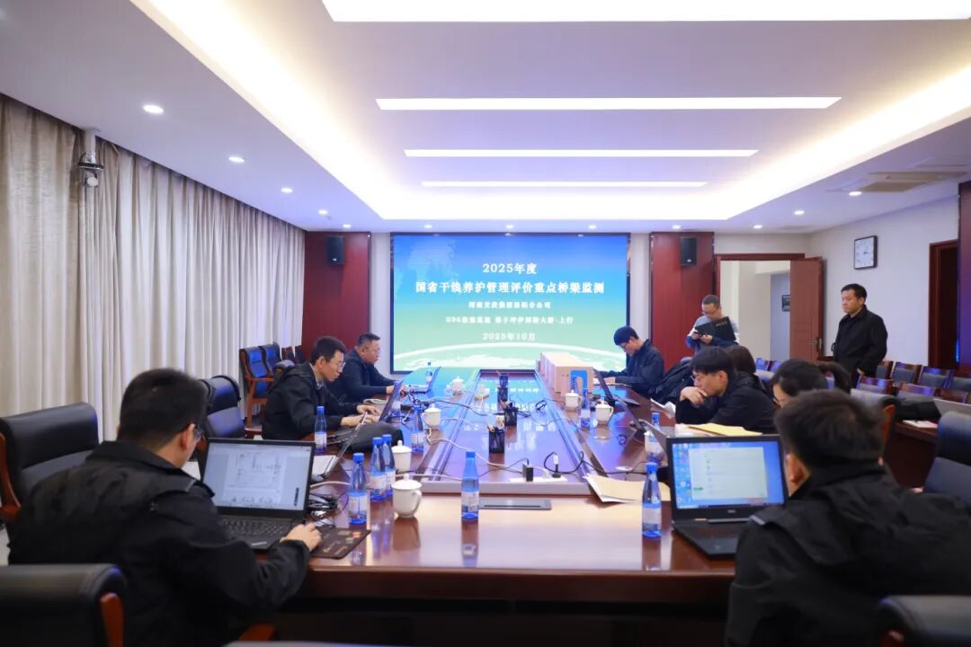 单位:养护管理部、综合事务办公室 发布时间:2025-10-152025年10月14日,“十四五”国省干线公路养护管理评价(以下简称“国评”)桥梁组专家一行抵达河南交投洛阳分公司,正式启动对S96洛栾高速栗子坪伊河特大桥的检查工作,标志着洛阳分公司正式进入“国评”时间。此次桥梁组检查将从10月14日持续至16日。