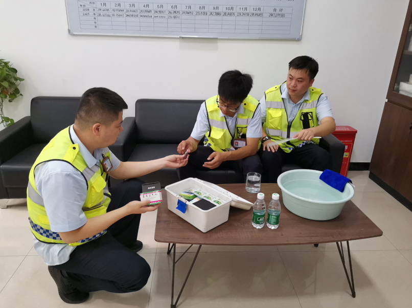 洛阳高新区站党支部:聚焦夏季高温作业安全,开展高温防中暑应急演练,模拟绿通验货员户外作业中暑场景,当班人员规范采取搀扶、物理降温、补淡盐水等措施,站领导点评不足并提出改进建议,强化了安全防范意识,为夏季站区安全生产筑牢了坚实防线。