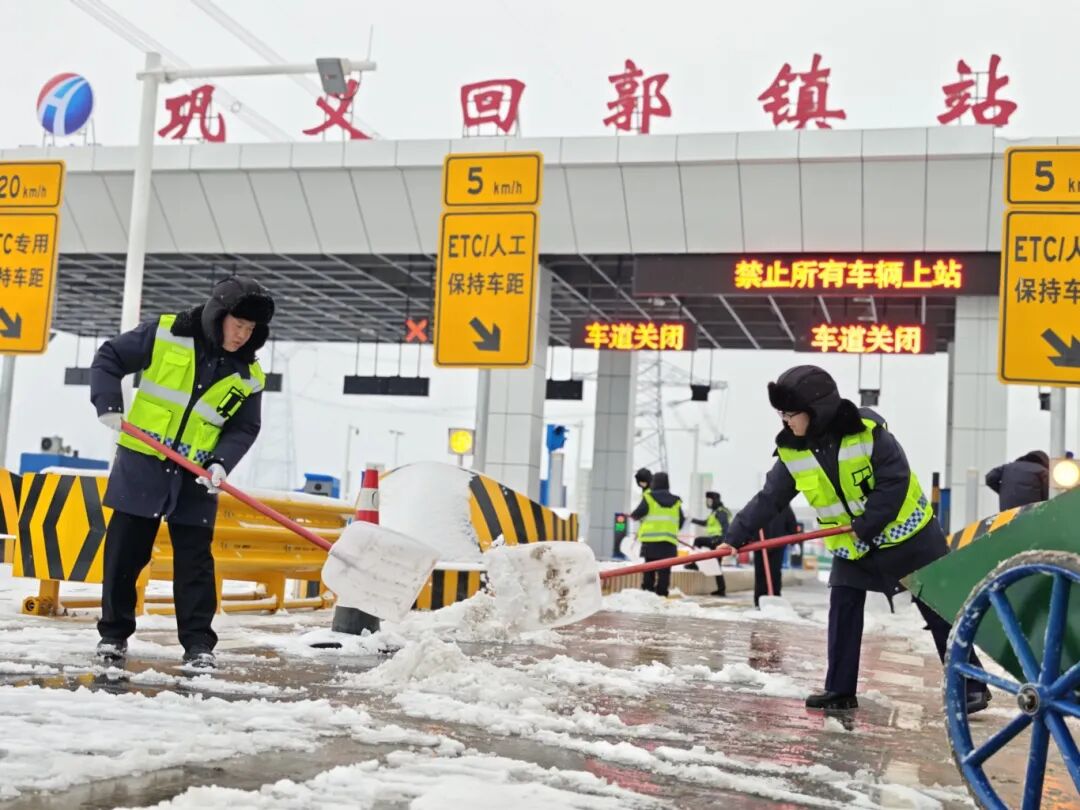 龙潭峡收费站:闻雪而动,党员干部靠前指挥、统筹部署,带头行动,一线职工不惧严寒、顶风冒雪,迅速开展收费广场及车道除雪融冰作业,全力保障道路通行安全顺畅,筑牢保通保畅防线。