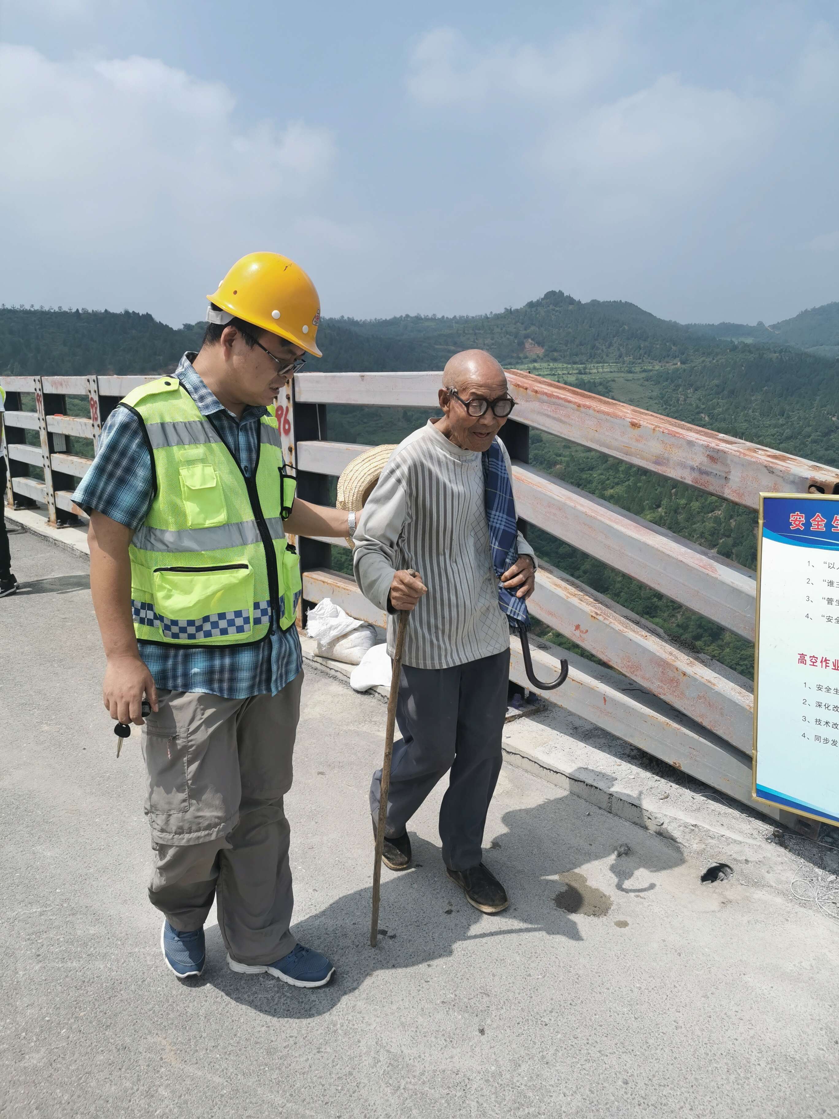 单位:洛宁西养护所 发布时间:2020-07-297月29日,养护人员卢辉辉、何肇磊在督导小铁钩刚构桥护栏提升专项工程现场时,发现一名行动不便的老人行走在高速公路上,极不安全,卢辉辉立即上前搀扶老人至安全区域,亲切询问老人出行原因以及去向,经过详细了解,问清了老人家庭住址和详细情况,为确保老人安全,遂将老人扶上巡逻车安全送至家中。
