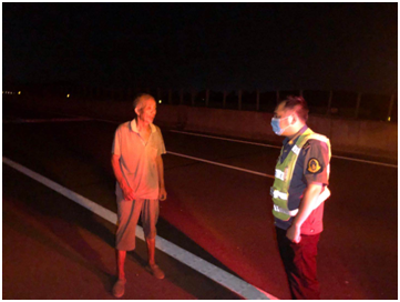 为了保证老人的安全,路政巡查人员把老人带至嵩县产业集聚区高速收费站口,并联系当地公安机关派出所,帮助老人寻找家人。20分钟后,当地派出所人员到达收费站口,巡查人员与派出所民警进行了深入沟通,说明了老人情况 ,办理了移交手续后巡查人员才放心离开。