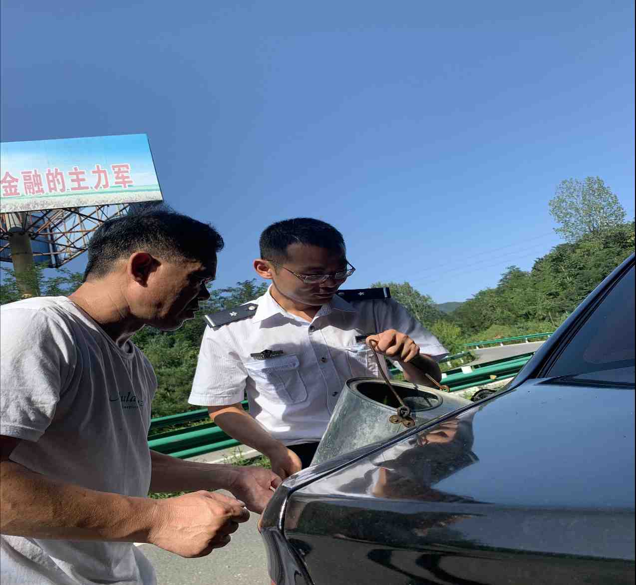 单位:重渡沟收费站 发布时间:2020-08-108月10日上午,一名司乘人员急匆匆从高速公路上步行至收费内广场,当班班长立刻上前询问情况,得知司机开车刚驶入高速公路就燃油耗尽,无法行驶。班长立即将情况报告给值班站长,同时为车辆设置安全区。了解情况后,值班站长立即安排人员车辆帮助司机到就近加油站购买汽油,同时叮嘱购买散装油的安全注意事项和流程,30分钟后,随着汽油顺利加进油箱,司机急迫的情绪消除,脸上露出了灿烂的笑容。