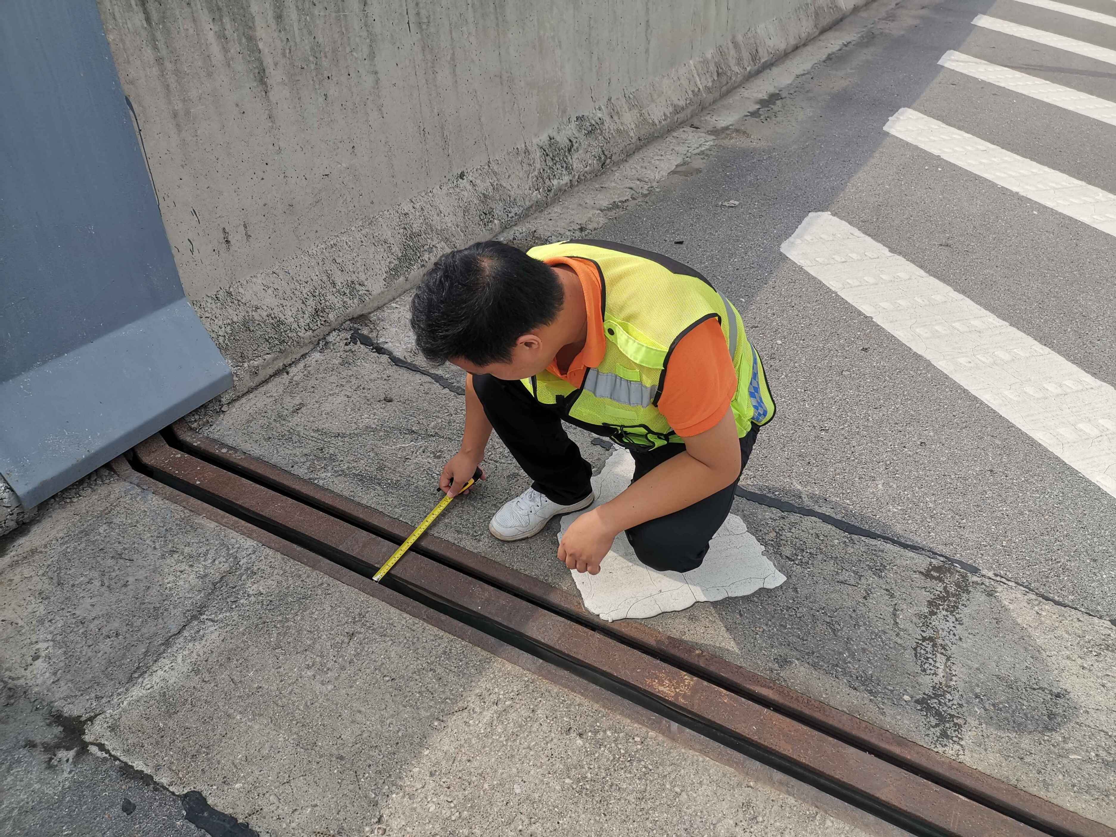 为第一时间掌握沿线桥隧结构物情况,九龙山养护管理所对辖区大桥伸缩缝变形型钢进行观测和测量,及时掌握伸缩缝健康信息。