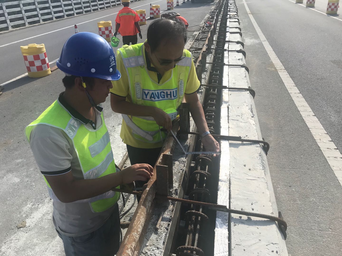 8月18日,洛宁西养护管理所对桑树大桥护栏专项工程搭设模板、钢筋绑扎进行检查验收,检查支模稳固情况、测量钢筋间距以及模板涂刷脱模剂,经全面检查合格后开始组织施工。
