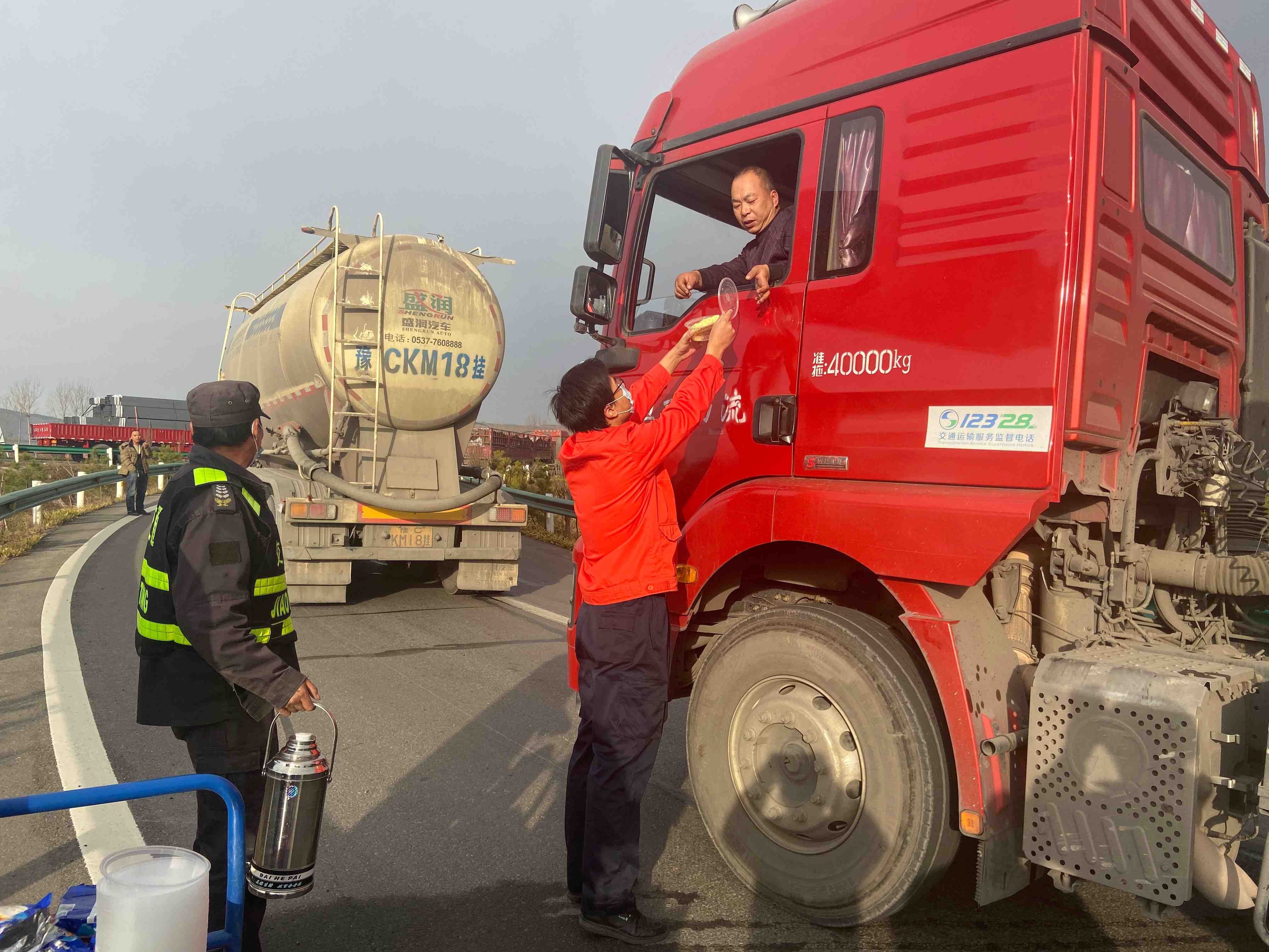 单位:嵩县运维大队 发布时间:2020-12-1112月10日,受大雾天气影响,全省高速公路实行交通管制措施。封道期间,不少大货车在收费站口等待道路开通。嵩县机电运维大队联合收费站积极行动,主动为站口等待的司乘人员送去了方便面、热水等物品,并叮嘱司乘人员耐心等待、注意安全。此举不仅解决了司乘人员的就餐问题,而且缓解了焦急等待的不良情绪,展现了我处良好的服务形象。