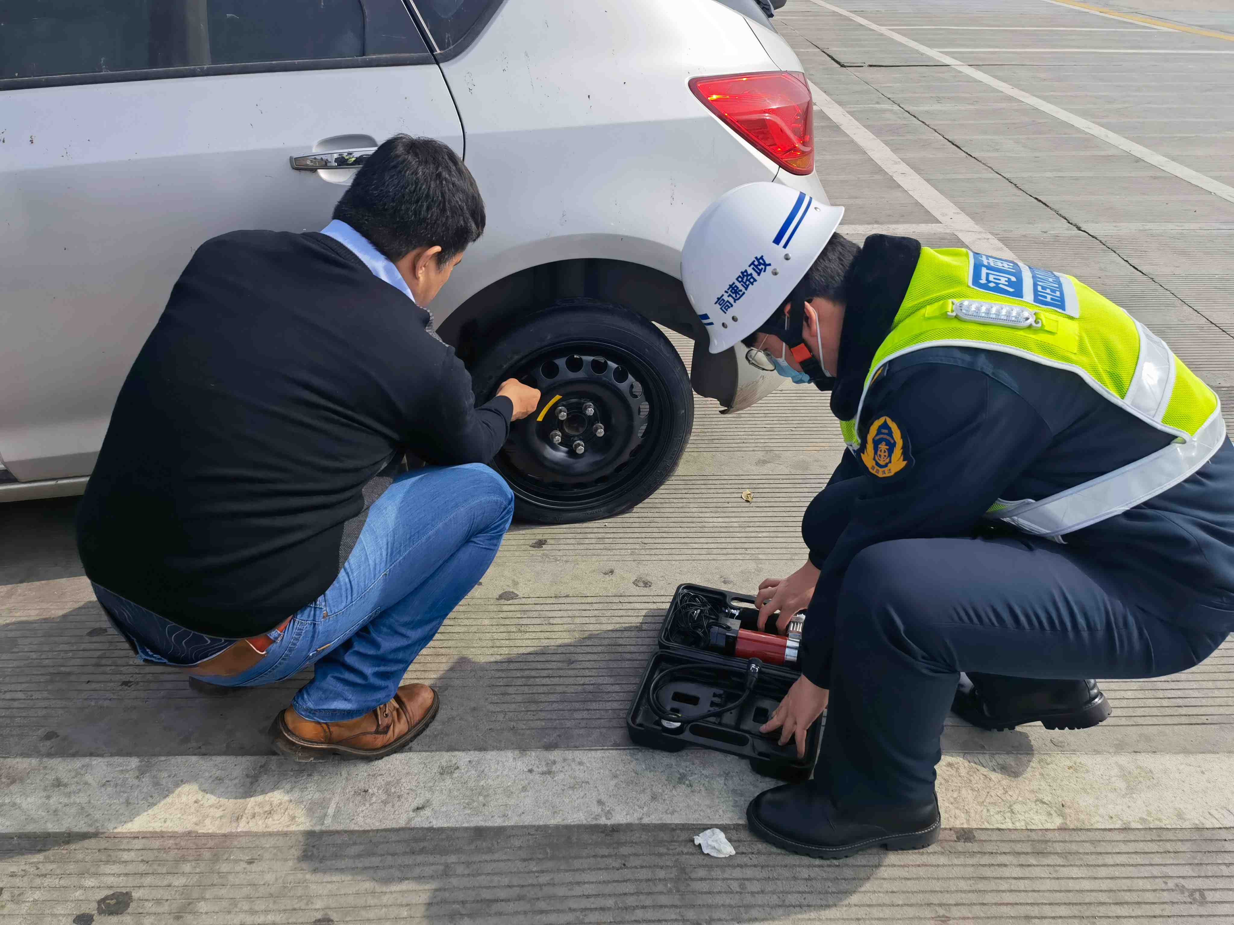 3月15日上午10:20左右,洛栾高速旧县服务区一辆小车左后轮发生爆胎。栾川路产管理大队值班员接到求助信息后,携带千斤顶、工具箱、充气泵等应急装备,第一时间赶到现场,帮助车主更换备胎。凭借娴熟技巧,15分钟就完成了备胎更换。