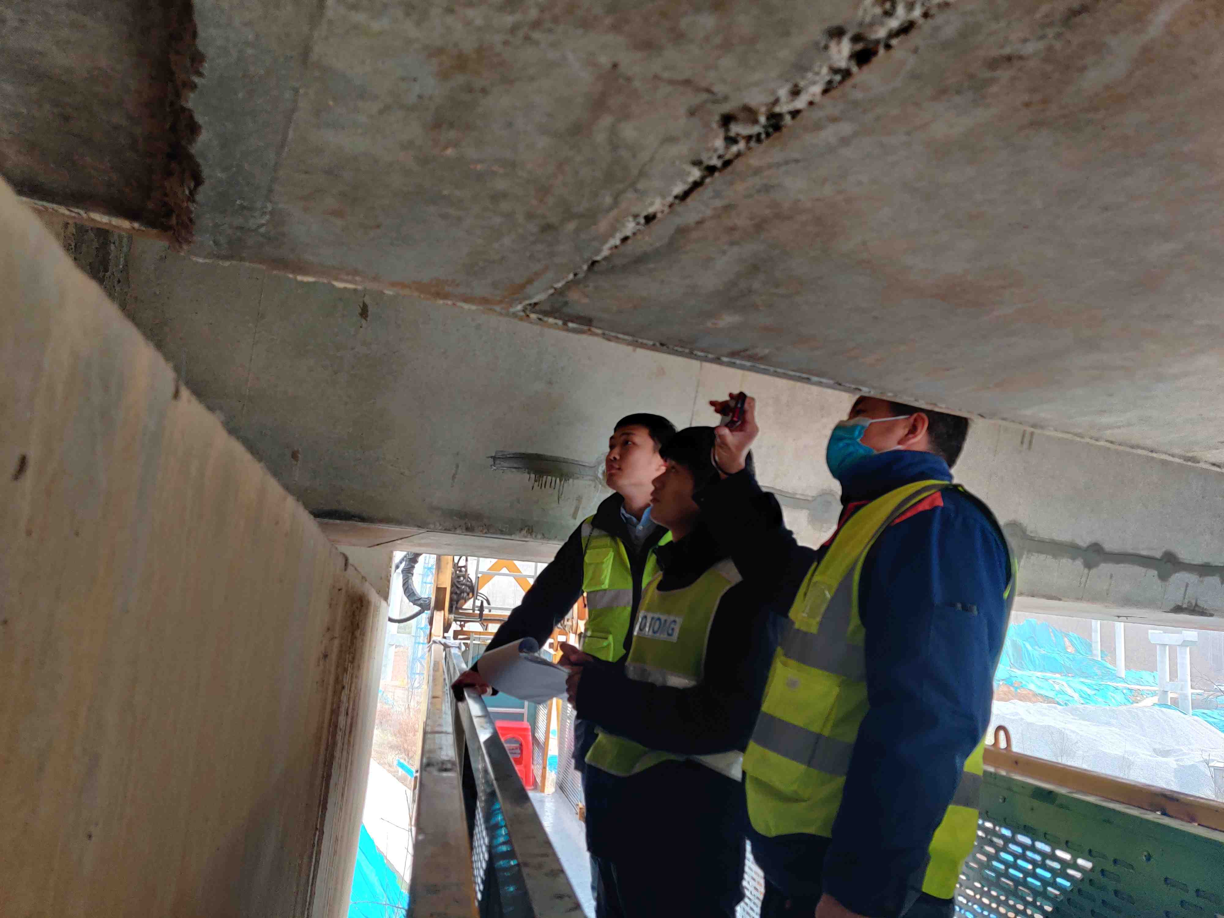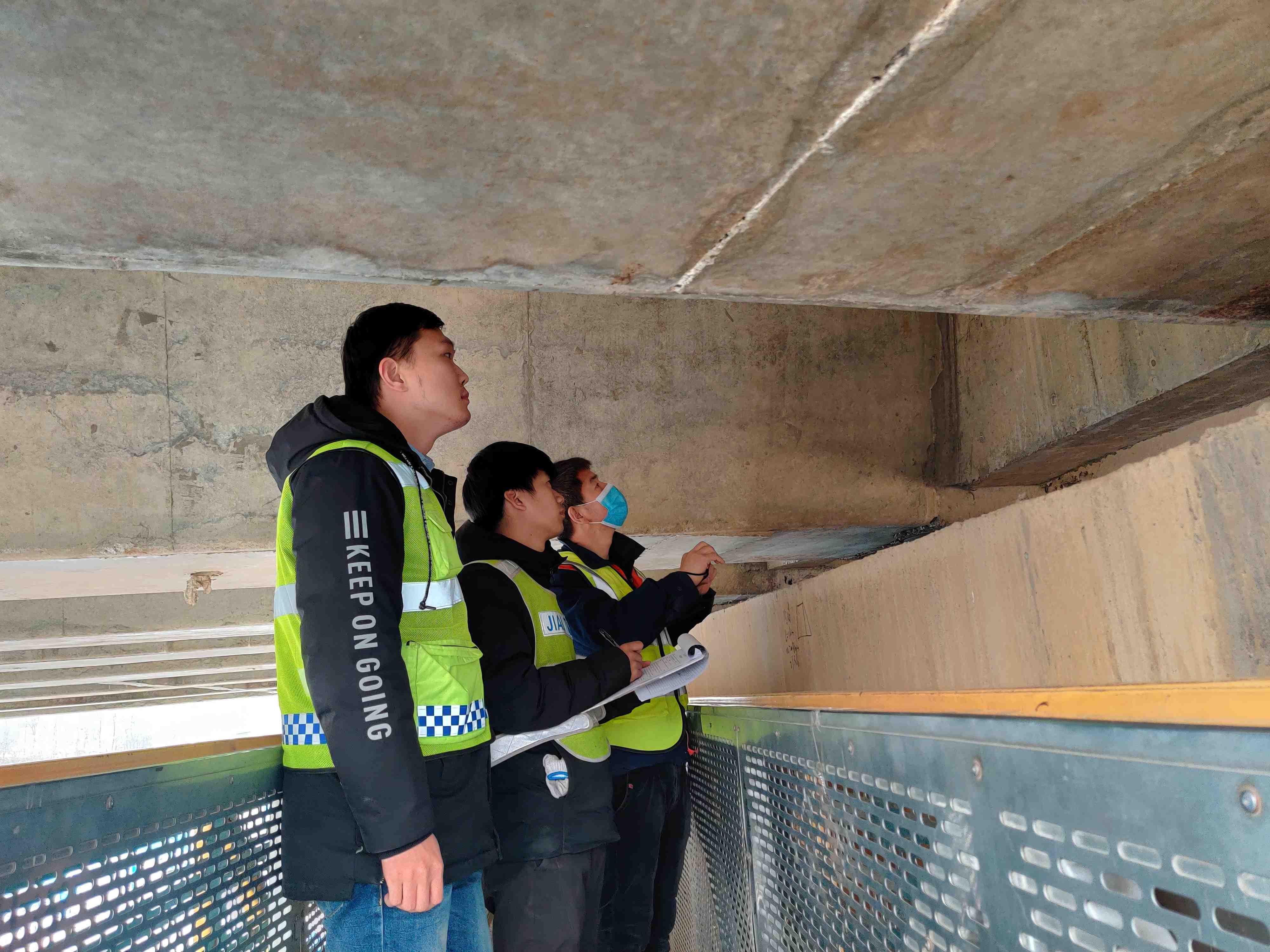 九龙山养护所联合检测单位对桥梁进行定期检测