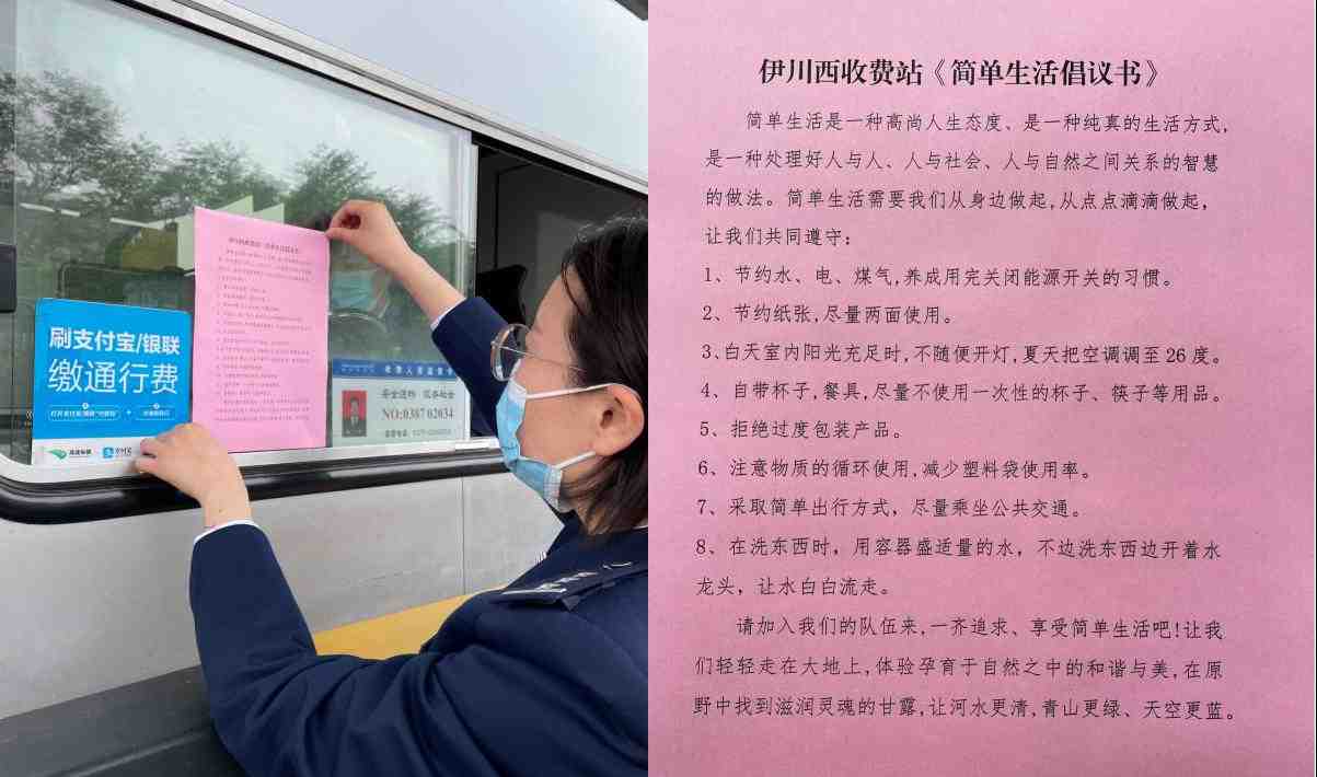 4月22日是第52个世界地球日,为了让更多的人了解世界地球日的相关知识,倡导大家爱护地球、保护地球、珍惜资源。伊川西收费站在收费窗口粘贴“简单生活倡议书”,向过往的司乘人员发放活动宣传单页,呼吁公众简单生活,从点滴做起,低碳生活,关爱自然,守护家园,。