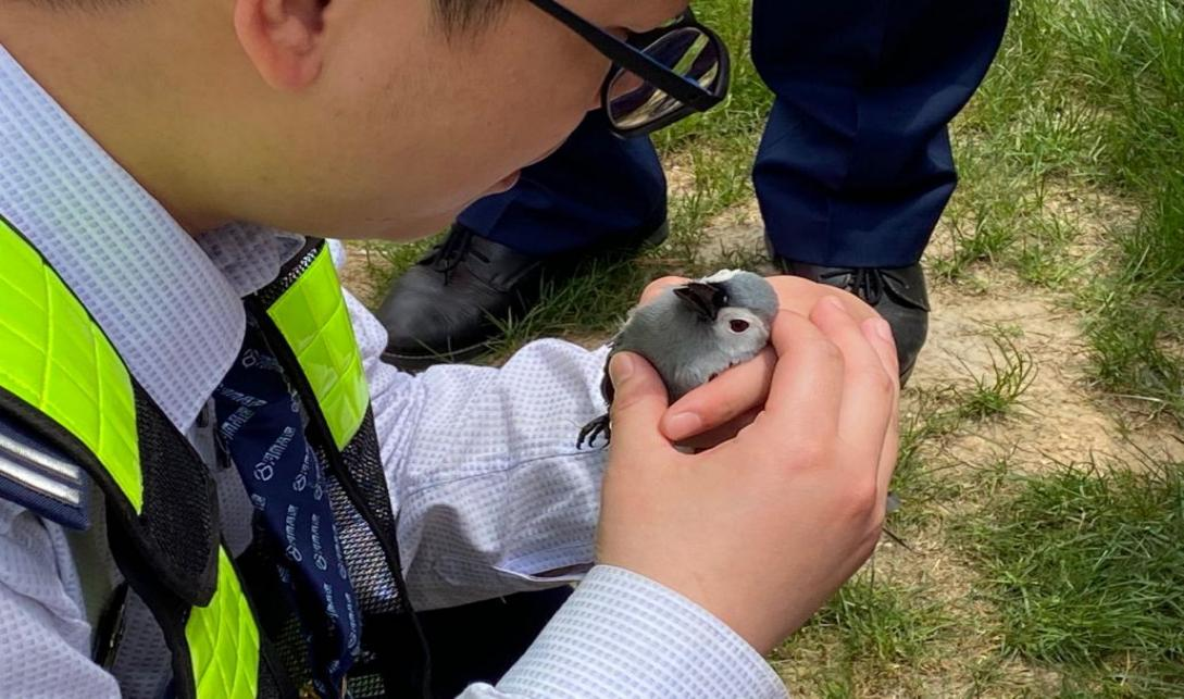 5月20日,白云山收费站执勤人员在车道上发现一只受伤的小鸟在车道里挣扎,车辆驶过十分危险。值班班长小心翼翼把它带到站区进行救治,小鸟右翅膀受伤,但两只小眼睛仍炯炯有神,非常可爱。经确认,这是一直灰燕鵙(学名:Artamus fuscus,是燕鵙科、燕鵙属小型鸟类)。白云山收费站工作人员对这只灰燕鵙进行了喂食及简单的消炎治疗,待其恢复健康后,将放归大自然。