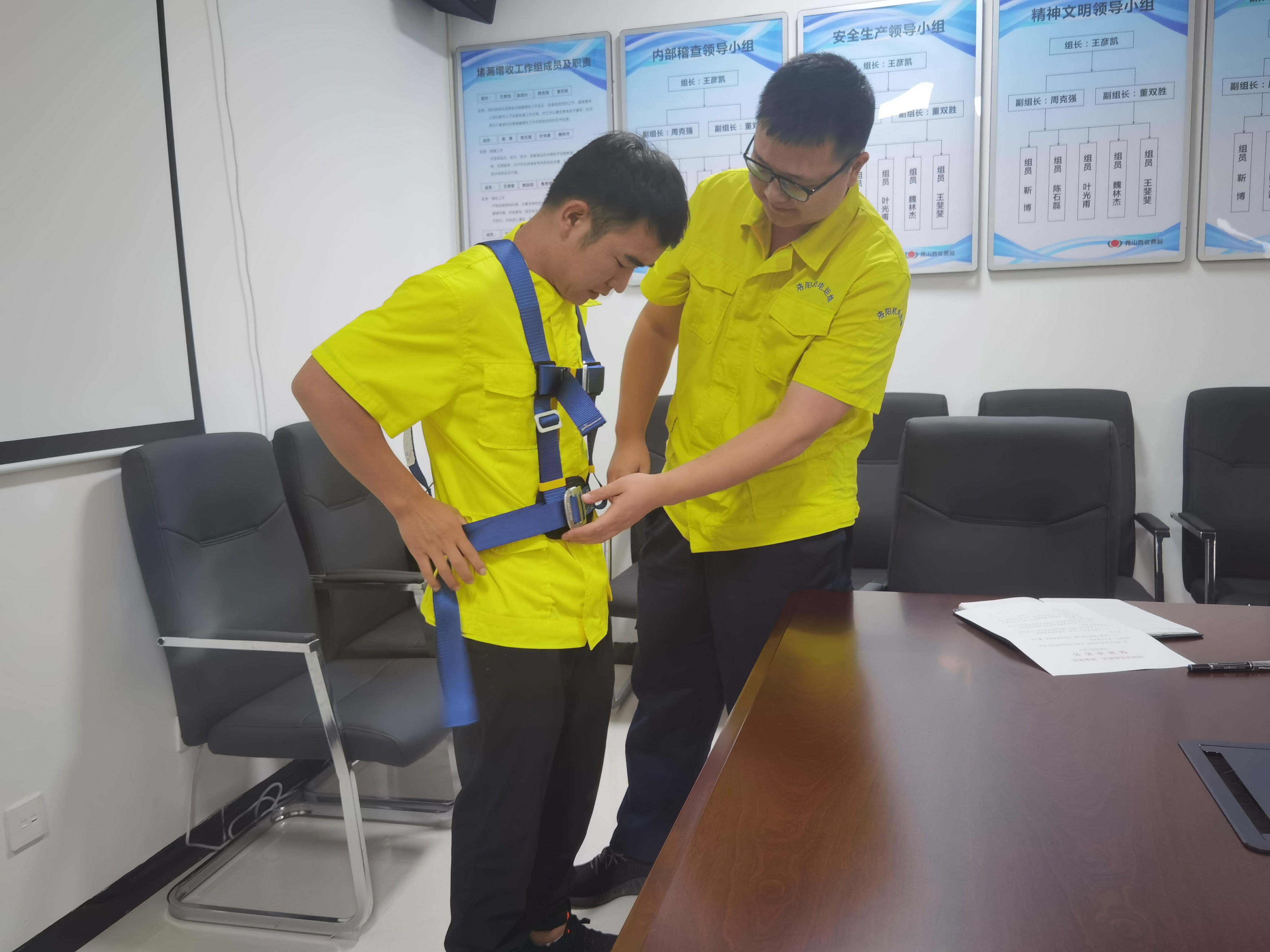 为进一步加强高空临边作业人员安全管理,有效预防高坠事故发生,7月12日,尧山西机电运维大队组织开展安全带保险绳使用技能培训。