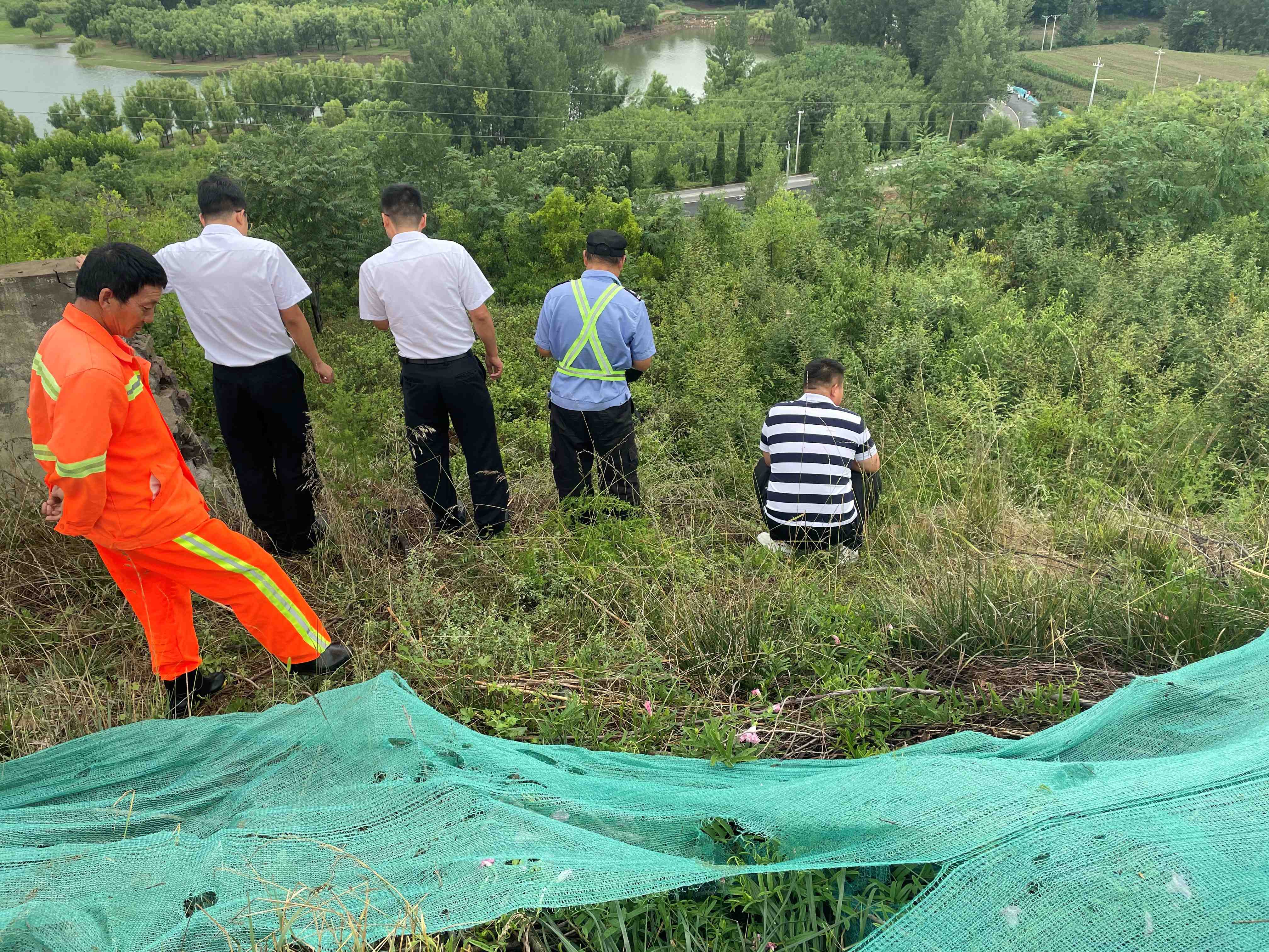 尧山东服务区 在21日巡查中,发现西区边坡水毁,立即与建设公司联系,同项目公司人员现场实地查看,会商解决方案,尽快施工恢复。