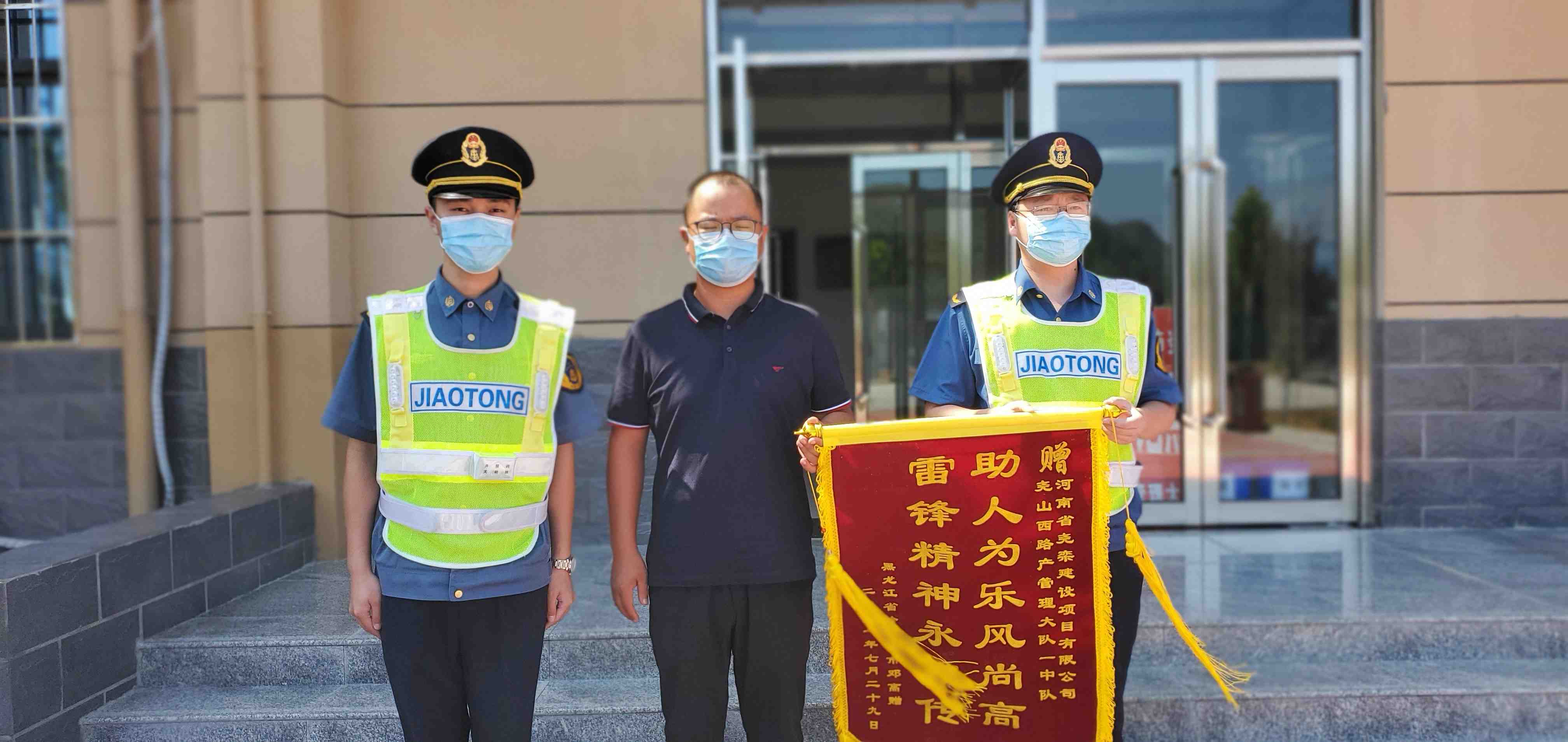 单位:尧山西路产队 发布时间:2021-08-108月6日,一位热心司乘专程驱车从栾川县赶来,将一面写着“助人为乐风尚高,雷锋精神永相传”的锦旗送到了尧山西路产管理大队值班人员的手中,衷心感谢之前在高速公路中遇到困难时路产巡查人员的及时相助。