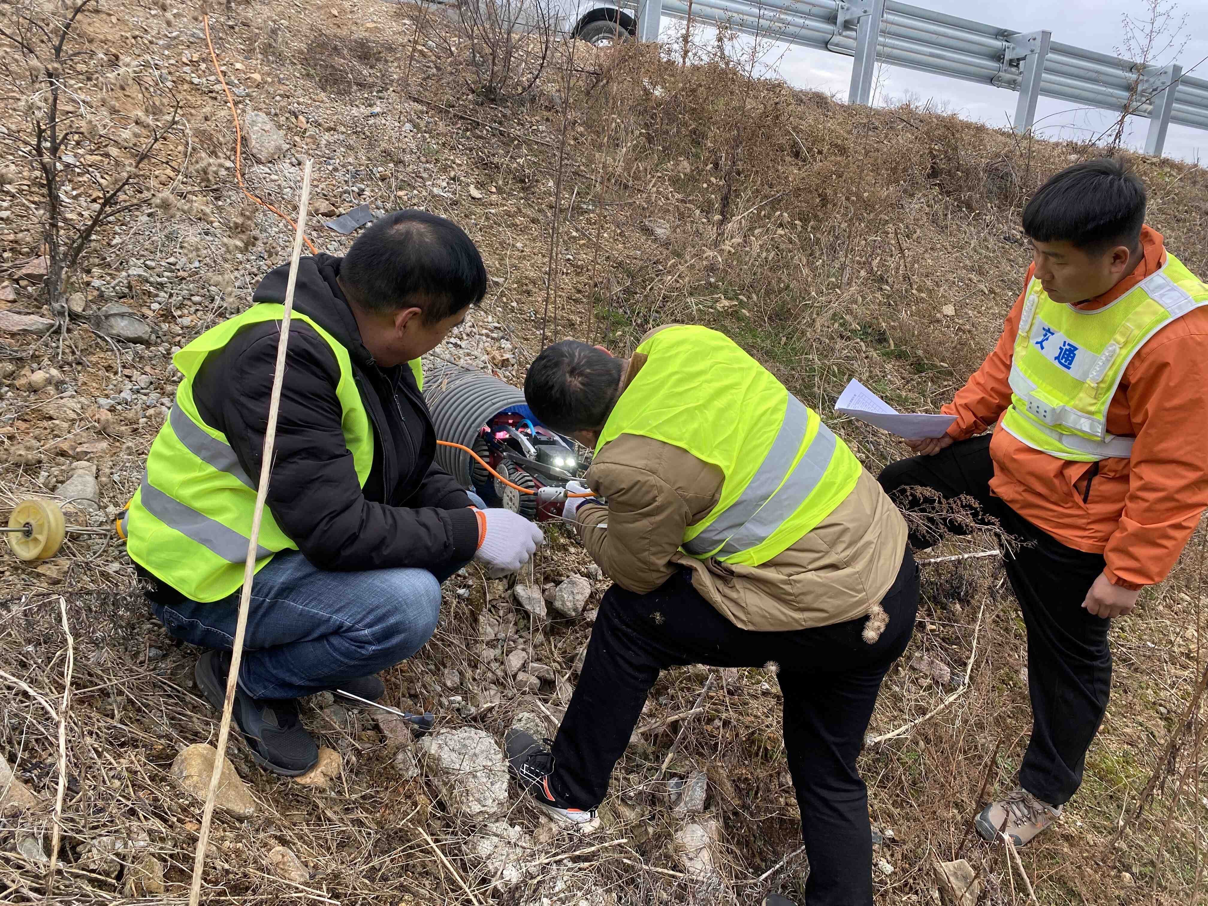12月10日,尧山西养护所路基专业负责人会同检测公司,针对所辖路段横向排水管道检测工作进行数据交底,并运用管道爬行机器人对所辖路段超高段集水槽外径DN315,型号PVC-U双壁波纹管横向排水及中央分隔带横向排水外径116HDPE排水管管道进行现场检测。根据前期养护所排查及对横向排水管位置的标记,有力保障检测工作的顺利开展,使养护所进一步掌握路段路况信息,为后期养护工作奠定下坚实的基础!