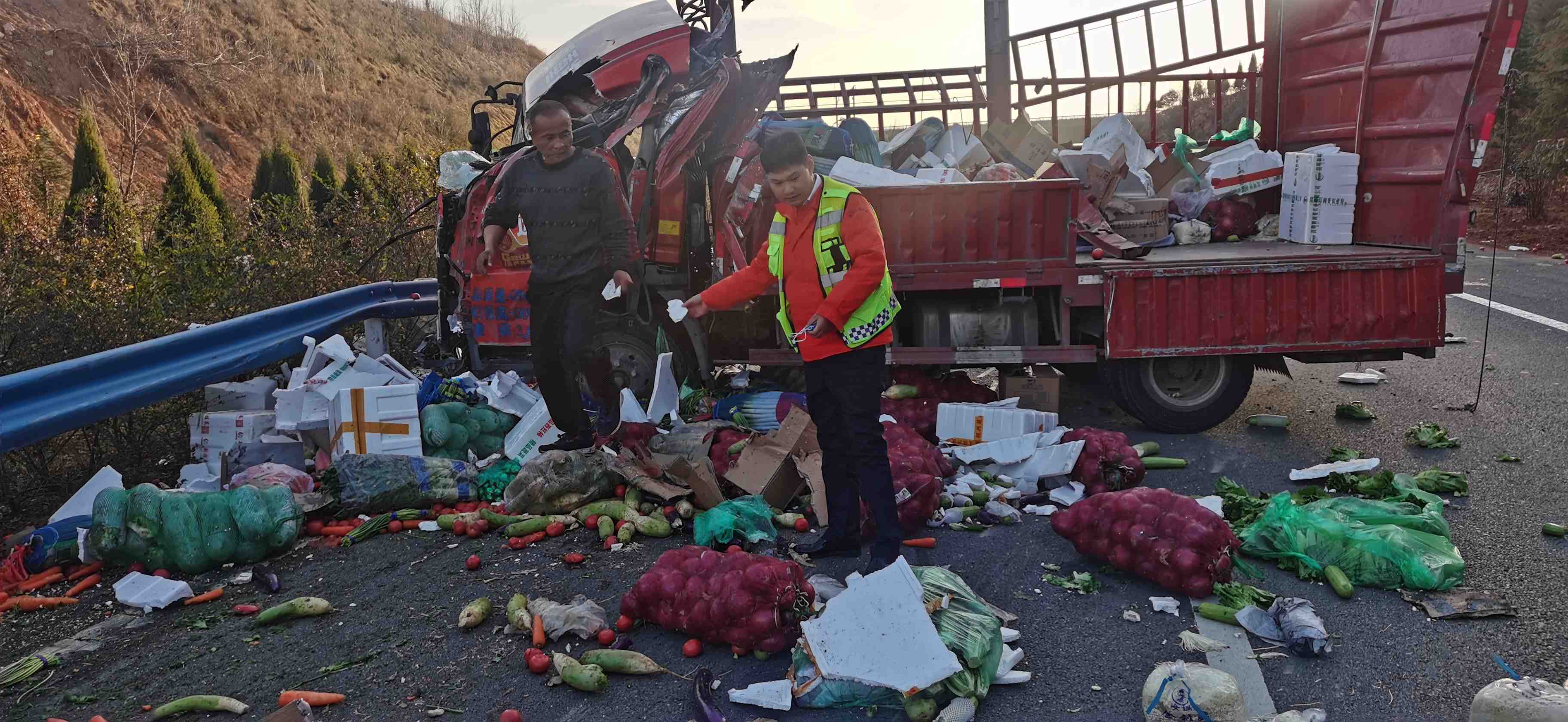 单位:宜阳运维大队 发布时间:2021-12-152021年12月14日下午16时30分,宜阳机电运维人员在维修设备途中遇到上行K11处一辆拉满蔬菜的小型货车撞击高速护栏,车头大面积损毁,情况十分危急!维护员王九通、李杭立即下车查看事故车辆,救出司机并询问身体状况,帮助司机第一时间离开事故车辆、简单清理擦伤。
