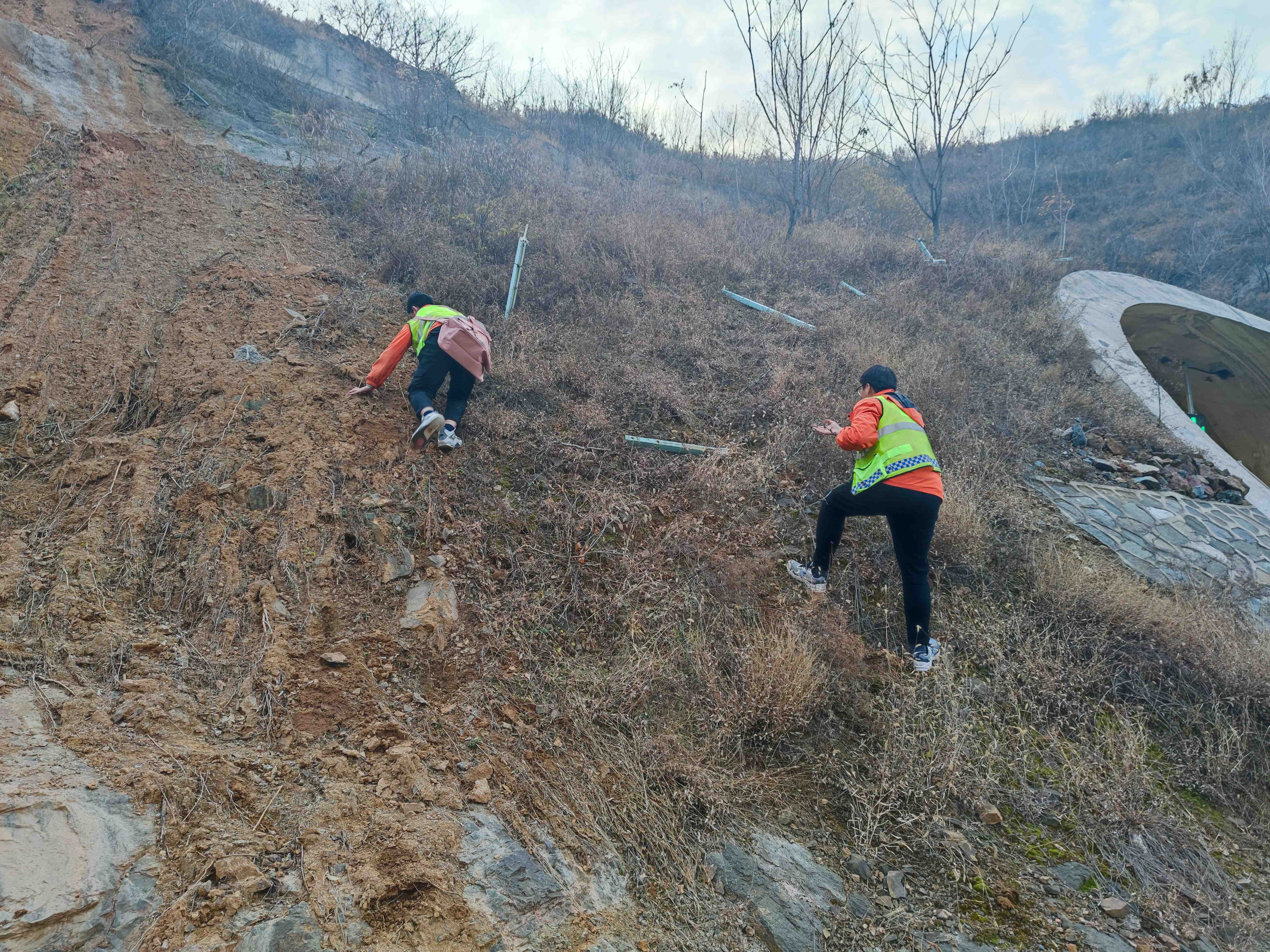 为查看隧道仰坡坡顶状况,洛龙养护所养护员爬高对边坡的稳定性进行查看,预测和预报可能发生的灾害,积极采取有效措施加强防护,保障高速公路安全。