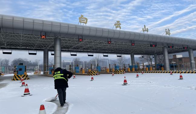 单位:白云山收费站 发布时间:2021-12-2812月26日清晨,2021年的最后一场雪给白云山收费站披上了一层洁白的薄纱,在带来美景的同时,也给各位司乘朋友带来安全隐患。为保障收费车道畅通,白云山收费站立即启动除雪保畅预案,组织在站职工清扫车道积雪。在站人员集合完毕后,在站长的带领下,职工分工合作,有的拿起扫把,有的拿起除雪板,有的拿起了铁锹,冒着刺骨的寒风到收费广场、车道、院落进行扫雪除雪工作。经过两个多小时的“浴雪奋战”,积雪全部清扫完毕,尽管有的收费员鞋子都湿透了,但他们毫无怨言。