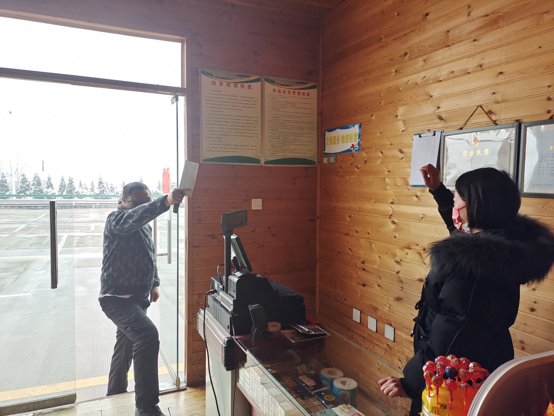 单位:旧县服务区 发布时间:2022-01-05为使旧县服务区全体员工进一步增强反恐怖防爆意识、提高抗击突发暴力袭击紧急状态下的应变能力,1月5日上午10点,旧县服务区组织在岗员工开展防恐防范模拟演练。