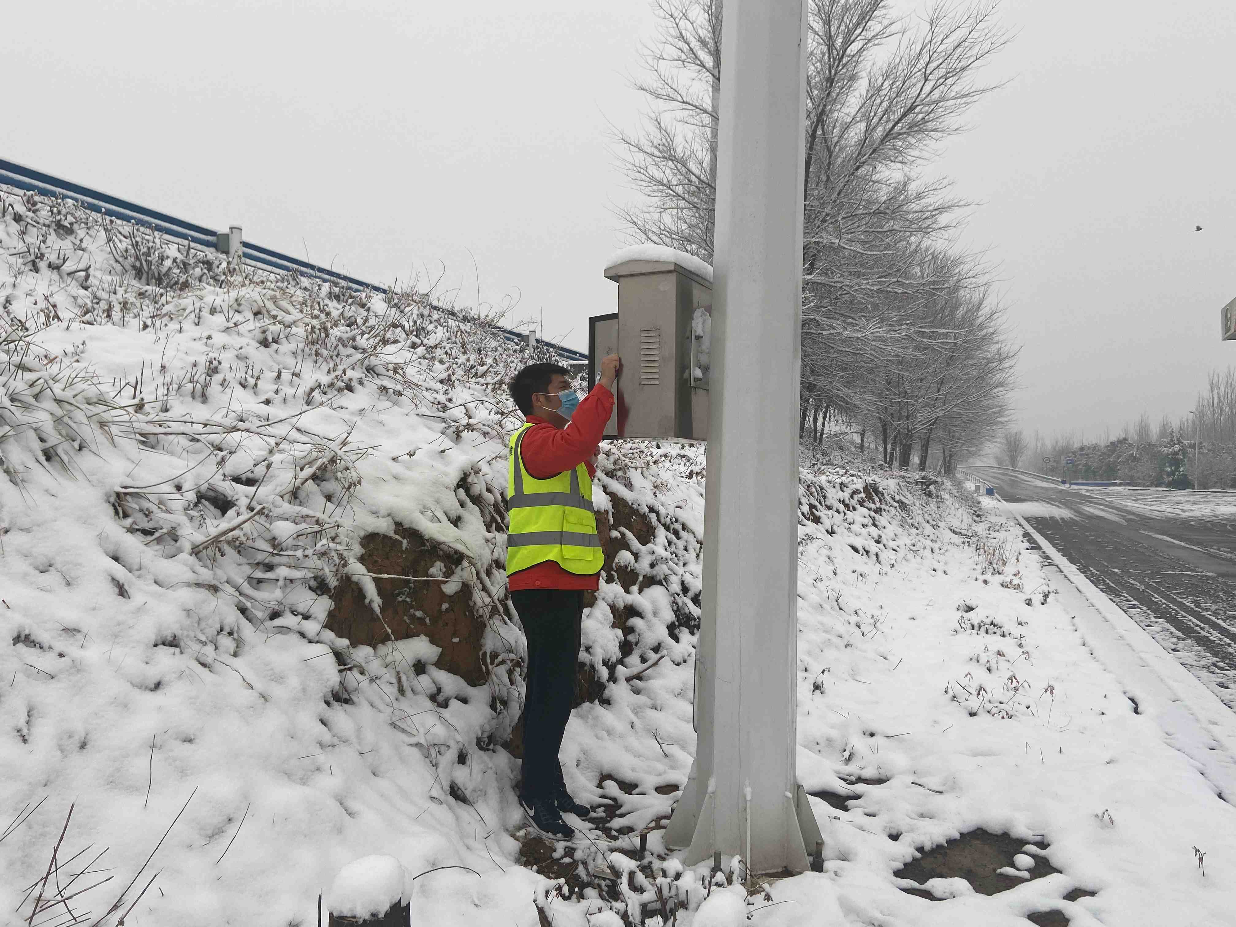 近日,辖区突降大雪,为保障机电设备安全稳定运行,洛宁运维大队组织维护员对辖区机电设备进行徒步巡查,密切关注变压器、配电箱等设备的运行情况和积雪覆冰情况,确保辖区设备安全运行。