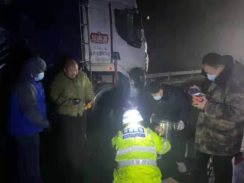 洛阳分公司相关领导得到事故信息后也紧急赶赴现场指挥救援工作并安排韩城服务区工作人员为被困司乘人员送去了热水及食物,对救援工作提出要求:保障好现场人员的防寒问题,加快救援速度尽快引导现场司乘人员驶离高速公路,事故车辆及时安排施救车脱离。23时20分侧翻货车被吊起,引导现场车辆分流至洛宁收费站驶离高速公路,截至21日1时45分事故车辆完全脱离现场,道路已恢复通行。