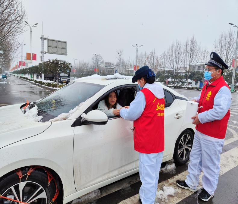 单位:洛宁收费站 发布时间:2022-01-26近日,洛阳各地迎来大范围的降雪降温天气,洛宁收费站车道入口全部封闭,导致大量外地车辆滞留于收费广场。封道期间洛宁收费站在做好除雪保畅工作同时,积极开展“寒冬送温暖 行动暖人心”志愿服务活动,1月25日,收费三班班长充分发挥志愿者的先锋模范作用,带领备岗收费人员及站内志愿者到收费广场,为滞留在广场的司乘人员送去一杯杯热水驱寒,同时准备了急救箱、维修工具和手机充电器等应急物品,确保在特殊情况发生时能够解决司机的燃眉之急,尽最大努力为司乘人员排忧解难。“您好,需要热水吗?”,“您好,需要帮助么?”......一句句暖心的话触动司乘人员的心,“太感谢您了,你们真是雪中送炭呀!”;志愿者们在寒冷的雪天为司乘人员带来了温暖,得到司乘人员的肯定和感谢!通过此次活动的开展,真正做到了贴近司乘、服务司乘,即提升了司乘人员的满意度,又塑造了洛宁收费站良好的窗口形象,进一步弘扬了“奉献、友爱、互助、进步”的志愿精神。