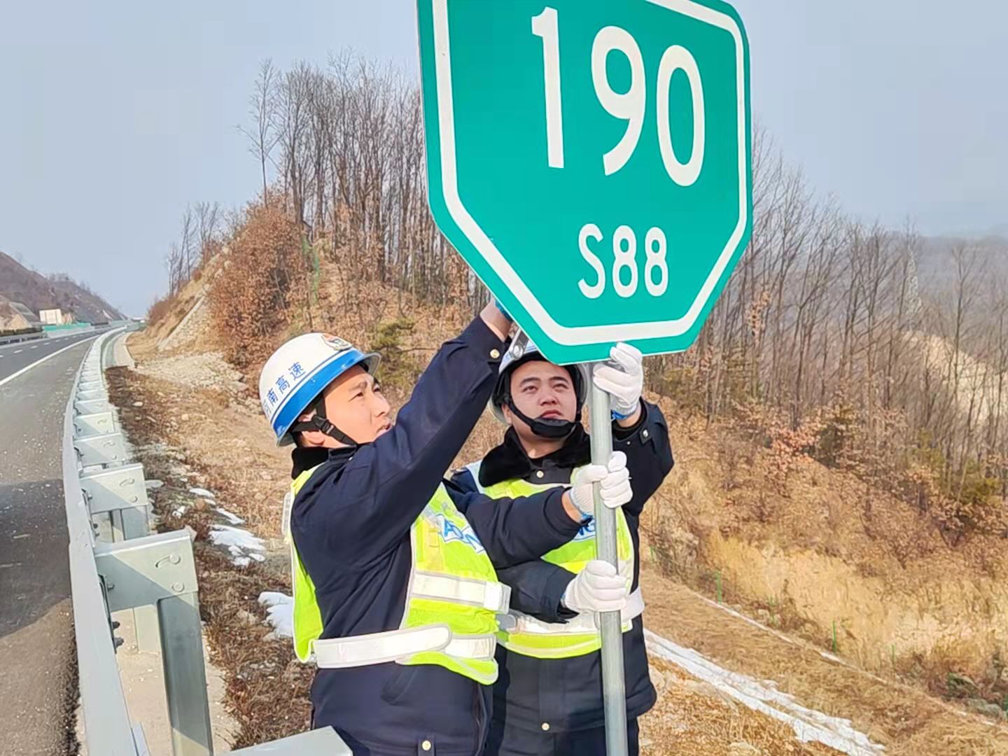 近期受恶劣天气影响,导致郑栾高速尧栾段部分隔离栅及公里牌出现了损坏,倒伏现象。2月9日上午,交发集团洛阳分公司尧山西路产管理大队开展了“修复”的专项行动。