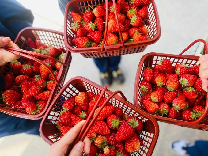 3月8日下午一点三十分,大家统一乘车来到了草莓基地,一到基地看到鲜艳欲滴的果实,大家都迫不及待地拿起了篮子开始行动,女同胞们一边采摘草莓一边交流关于草莓的成熟、采摘和如何保鲜及制作草莓酱等方面的知识,气氛非常活跃,大家都沉浸在快乐之中。一个小时后,每个人都有了丰硕的成果。