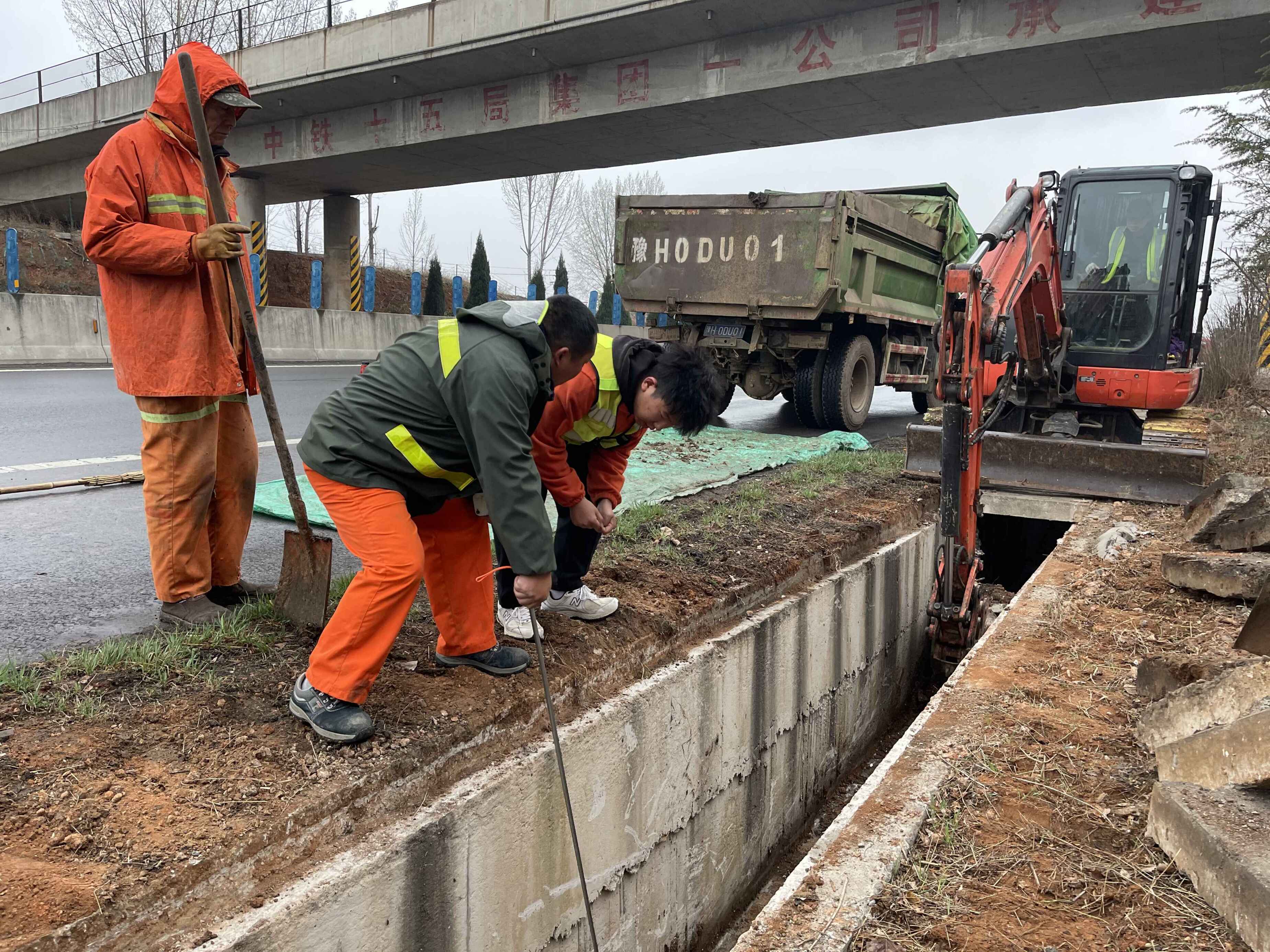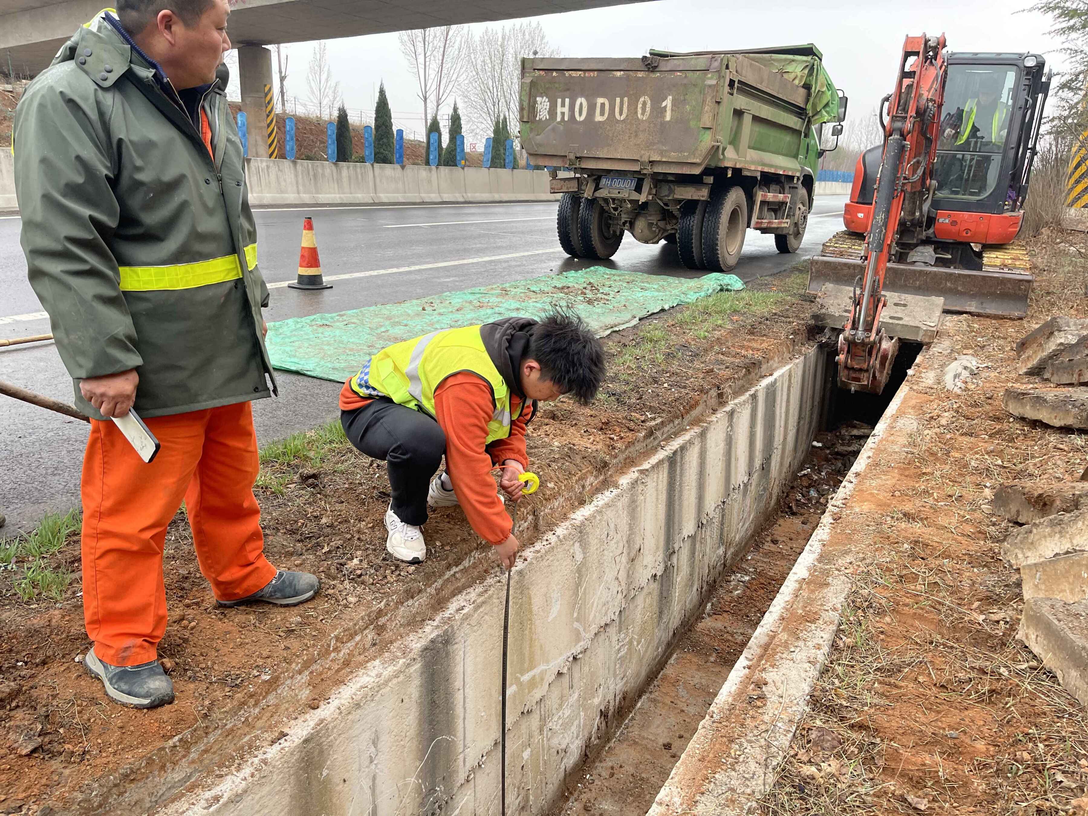 单位:周山养护所 发布时间:2022-03-17为全面做好春季预防性养护工作,保证道路排水设施状况良好。近日,周山养护管理所组织监理单位及养护单位三方共同对洛卢高速洛宁段全线排水设施进行了排查,并采用机械人工相互配合的方式,对存在淤积进行彻底清理,为高速公路汛期安全运行保障打下坚实基础。