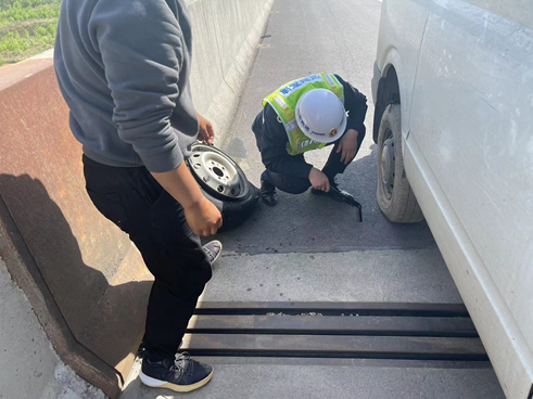 经了解,二人所驾驶的车辆在行驶中右后轮发生爆胎。因为第一次遇见这种情况,不知如何处理才好时,幸好遇到了高速路产队员给予暖心的帮助。20分钟后,随着最后一颗螺丝上紧,备胎已经更换完毕,当事人激动地握着路产人员的手一再表示感谢:“在我们一筹莫展之时,你们及时出手援助,才让我们快速成功解困,太谢谢你们啦!”