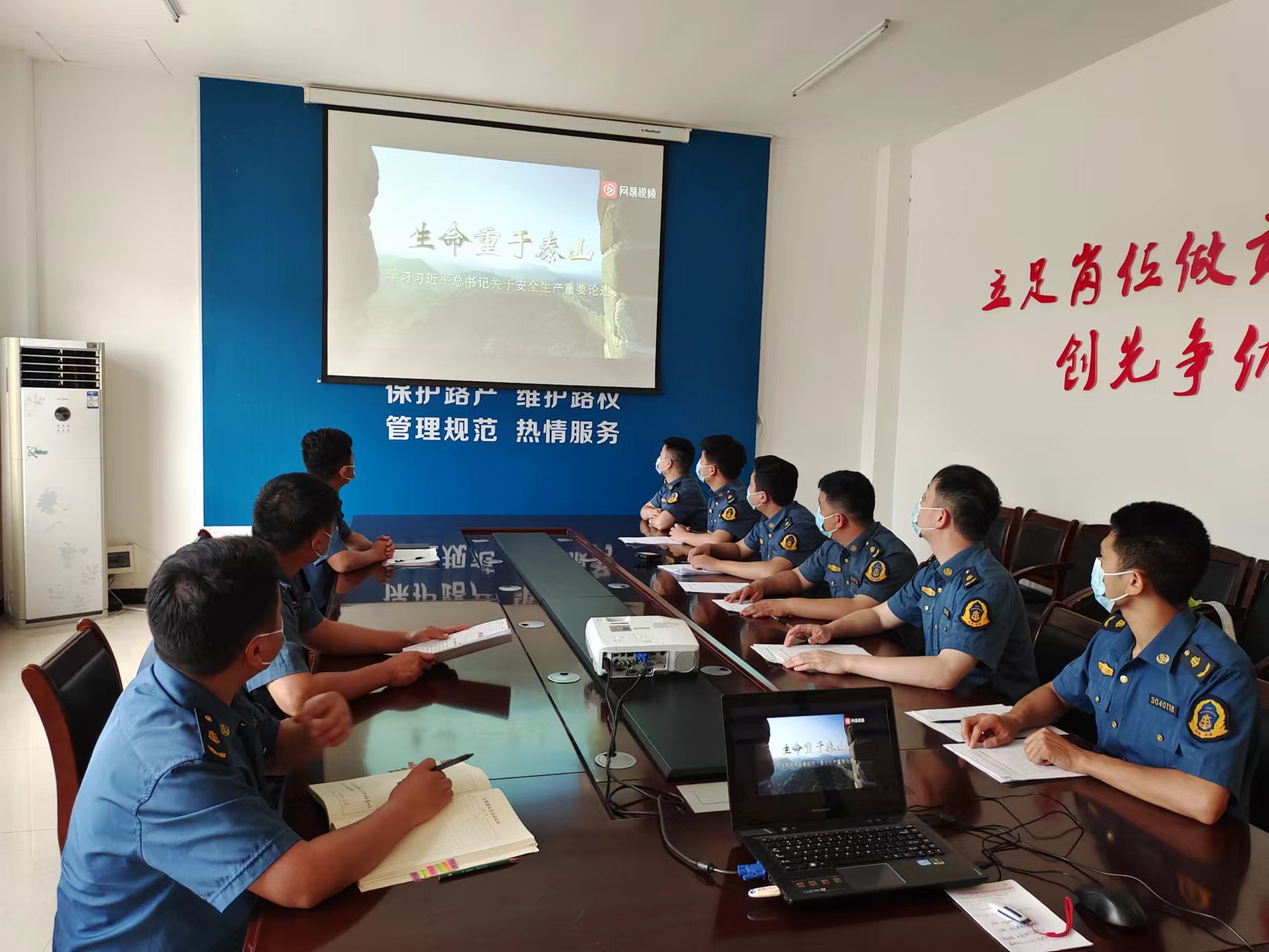 单位:嵩县路产大队 发布时间:2022-06-09为了深入学习贯彻习近平总书记关于安全生产重要论述,树牢“人民至上、生命至上”理念,积极响应2022年全国“安全生产月”“遵守安全生产法,当好第一责任人”主题,切实提高干部职工安全生产思想认识,增强安全意识,落实各项安全工作要求,6月8日,嵩县路产管理大队组织职工集体观看《生命重于泰山》电视专题片。