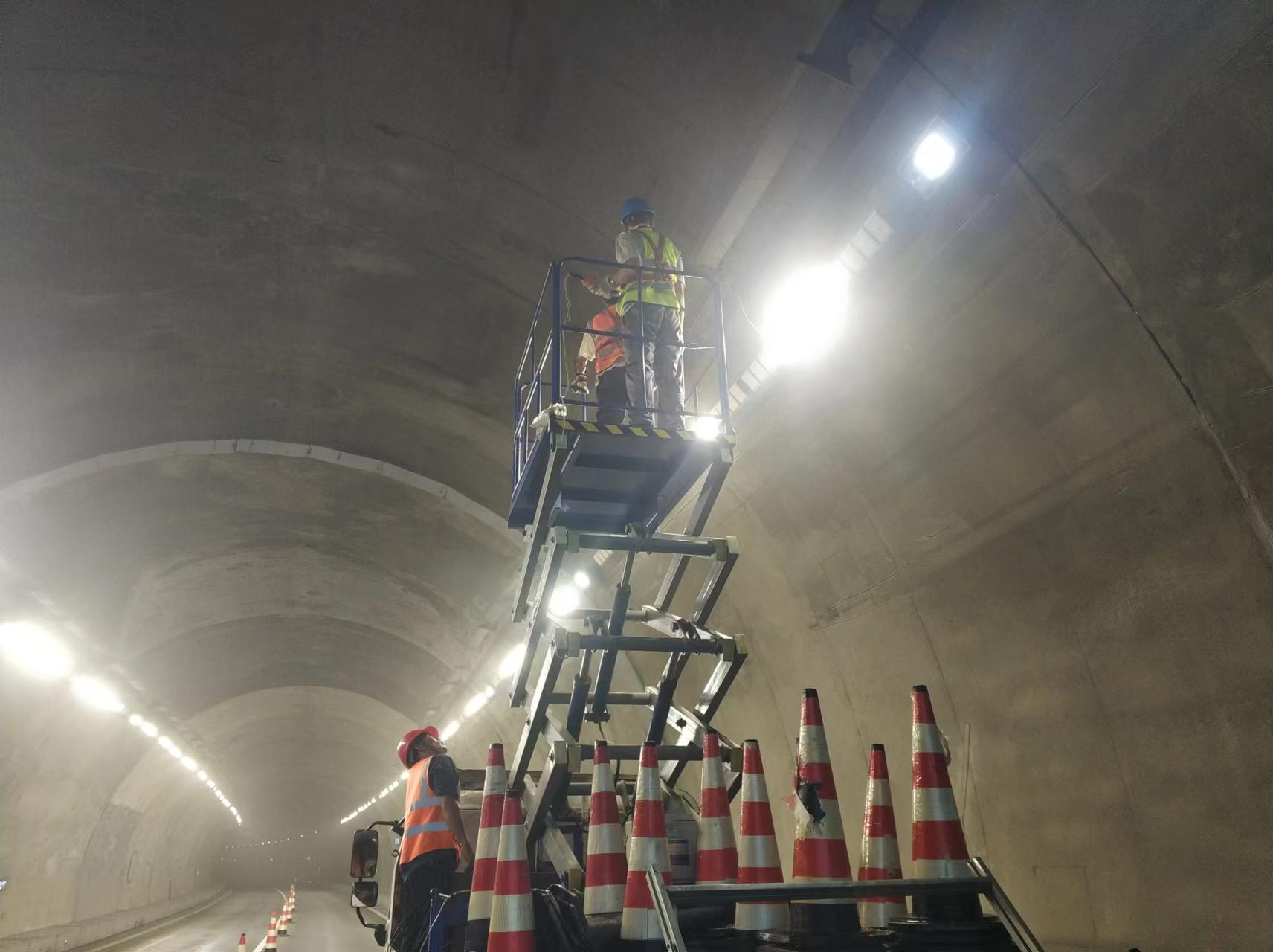 嵩县运维大队在日常隧道巡查中,发现玉皇庙隧道上方的电缆桥架盖板部分掉落,存在安全隐患。大队立即组织人员使用登高车对玉皇庙隧道上方的电缆桥架进行统一加固。经过一天的努力,顺利完成加固任务,此次共加固电缆桥架1200余米。大队通过加强日常巡查力度,做到早发现早处置,及时消除安全隐患,确保隧道行车安全。