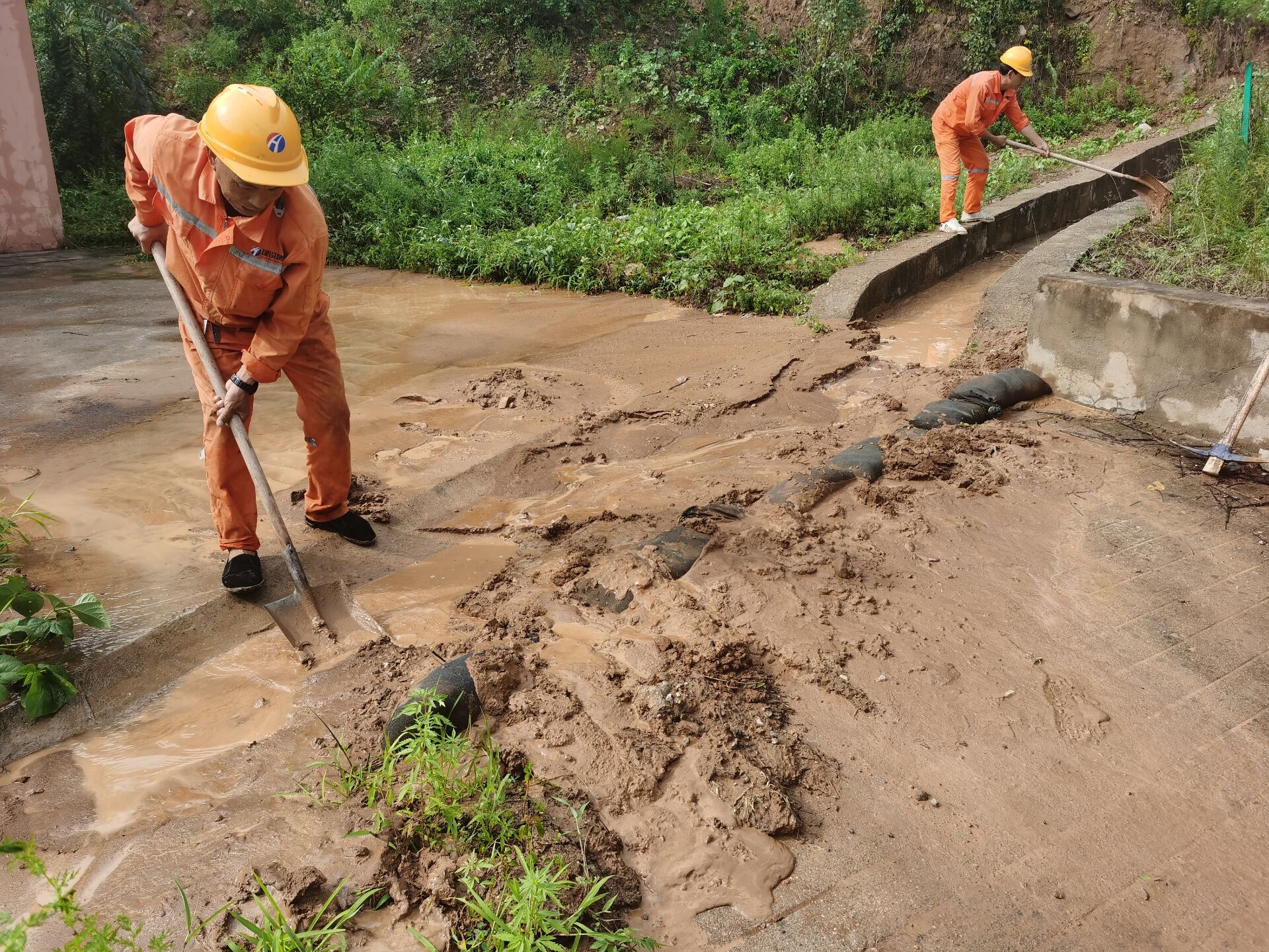 8月3日下午,洛栾高速嵩栾段,因突降暴雨上秋花阴隧道上方排水沟淤积,导致水往隧道内流,给道路行车安全增加了很大的隐患。九龙山养护所立即组织养护单位清理淤积并摆放沙袋,由于发现和处置及时,未造成任何事故的发生,保障了高速公路的安全畅通。