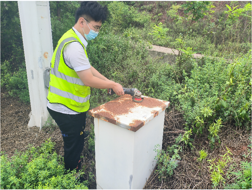 单位:洛宁运维大队 发布时间:2022-08-11为进一步加强机电设备管养工作,防止备的生锈、腐蚀和损坏,延长设备使用寿命。近期,洛宁运维大队持续开展设备除锈防腐工作,重点对辖区ETC门架配电箱、情报板配电箱进行除锈防腐处理,清除设备表面的氧化层、锈迹,并进行油漆涂刷。此次设备除锈反腐工作,有效提升了设备的使用率和完好率。同时,设备外观焕然一新,文明生产面貌也得到了进一步提升。