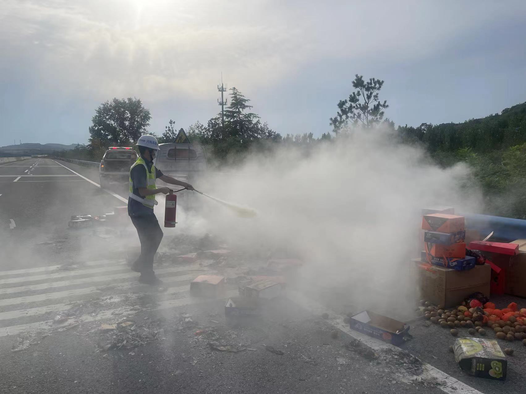 高速路上货车突着火 路产人员及时除隐患