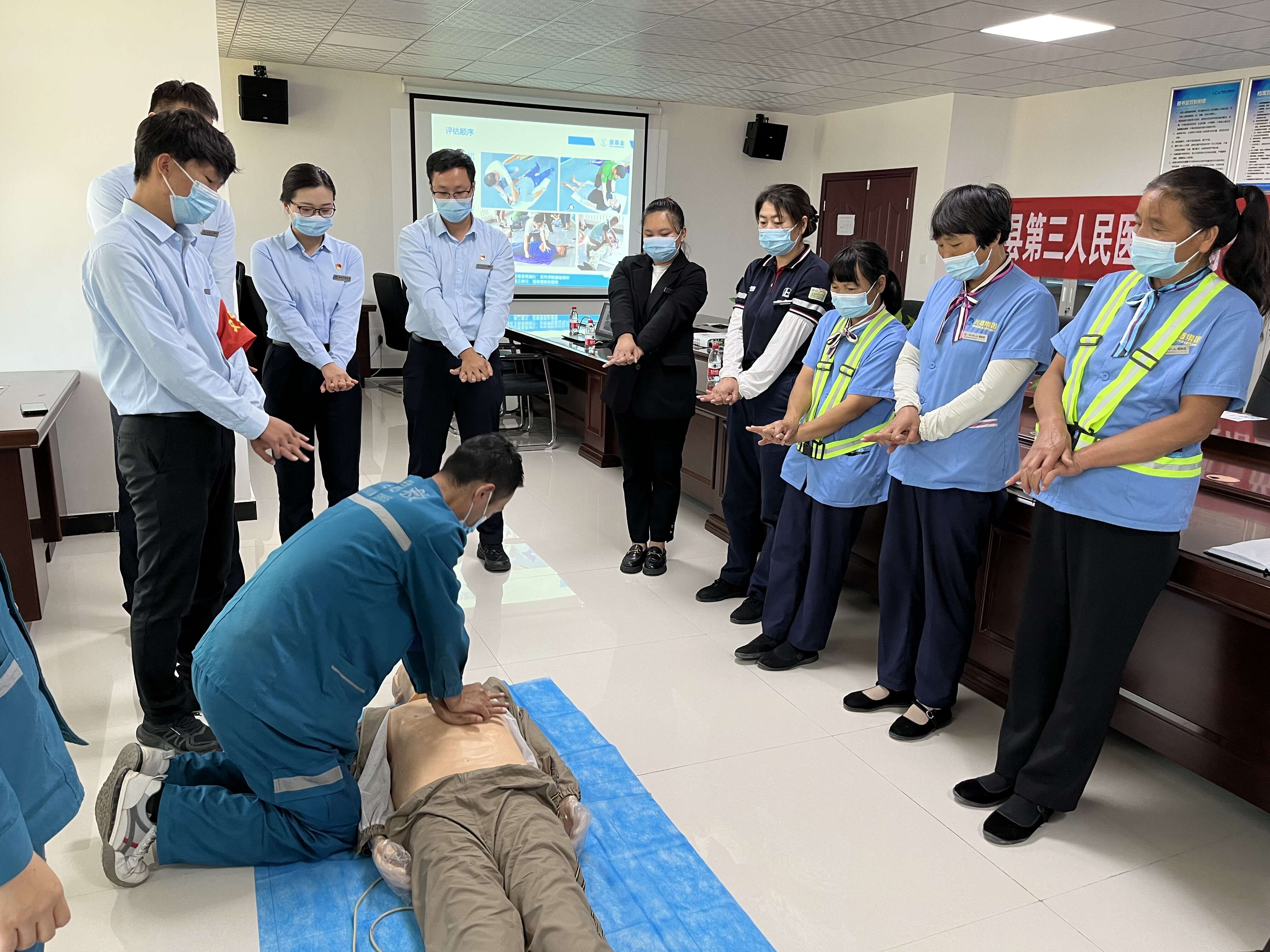 单位:服务区管理部 发布时间:2022-09-19根据洛阳分公司能力作风建设年活动安排,全面提升服务区员工“五种能力”,突出“提升能力、锻造作风、实干立身、争先出彩”主题,服务区管理部于9月15日邀请嵩县第三人民医院急救科刘主任在白云山服务区对服务区员工进行胸痛相关病情救治知识和胸外心肺复苏操作的讲座和实操培训。