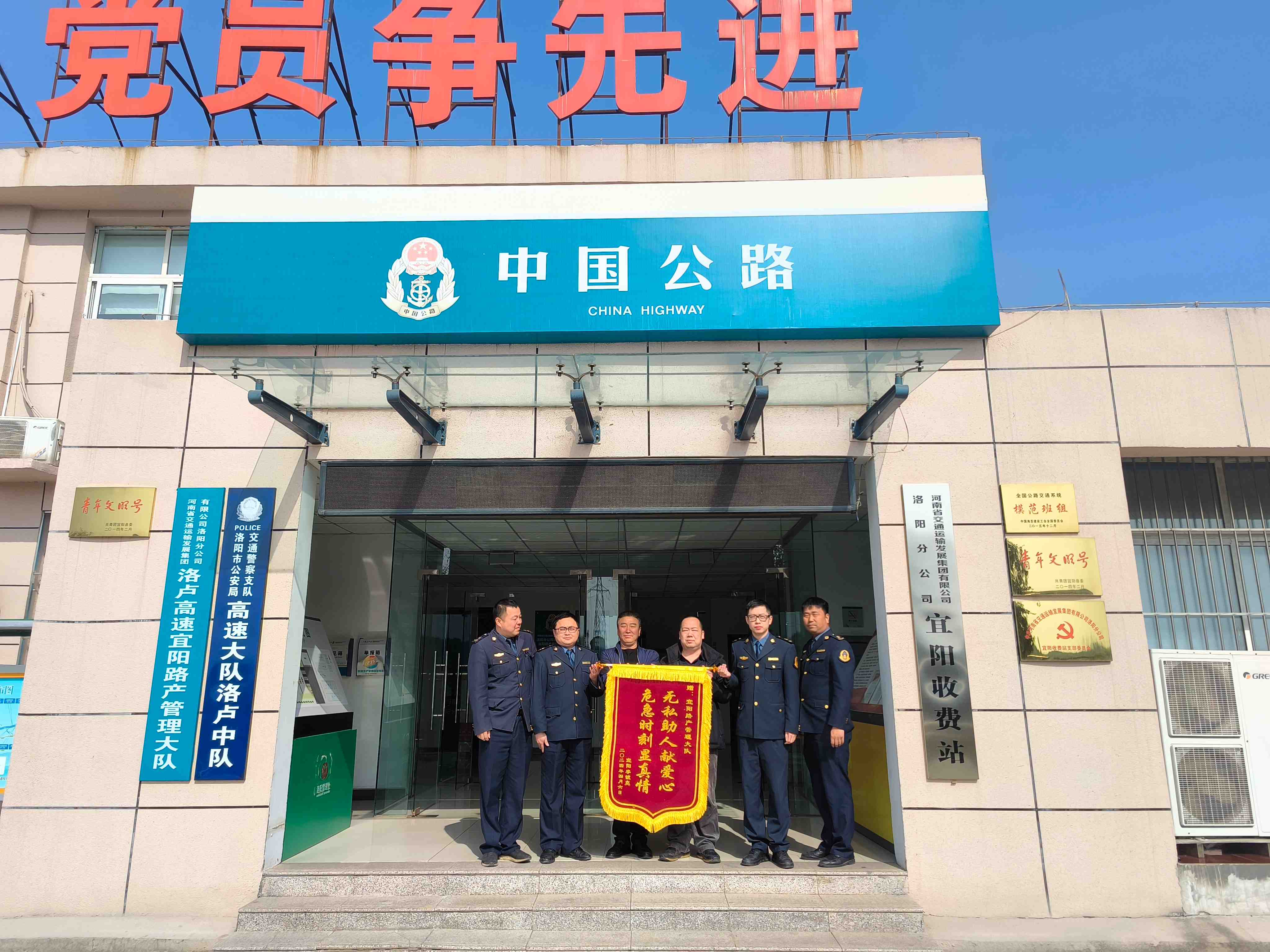 单位:路产管理部 发布时间:2024-04-082024年4月7日下午15时40分,两名群众将一面印着“无私助人献爱心 危急时刻显真情”的锦旗送到河南交通投资集团有限公司洛阳分公司宜阳路产管理大队,以表达对路产员的感激之情。