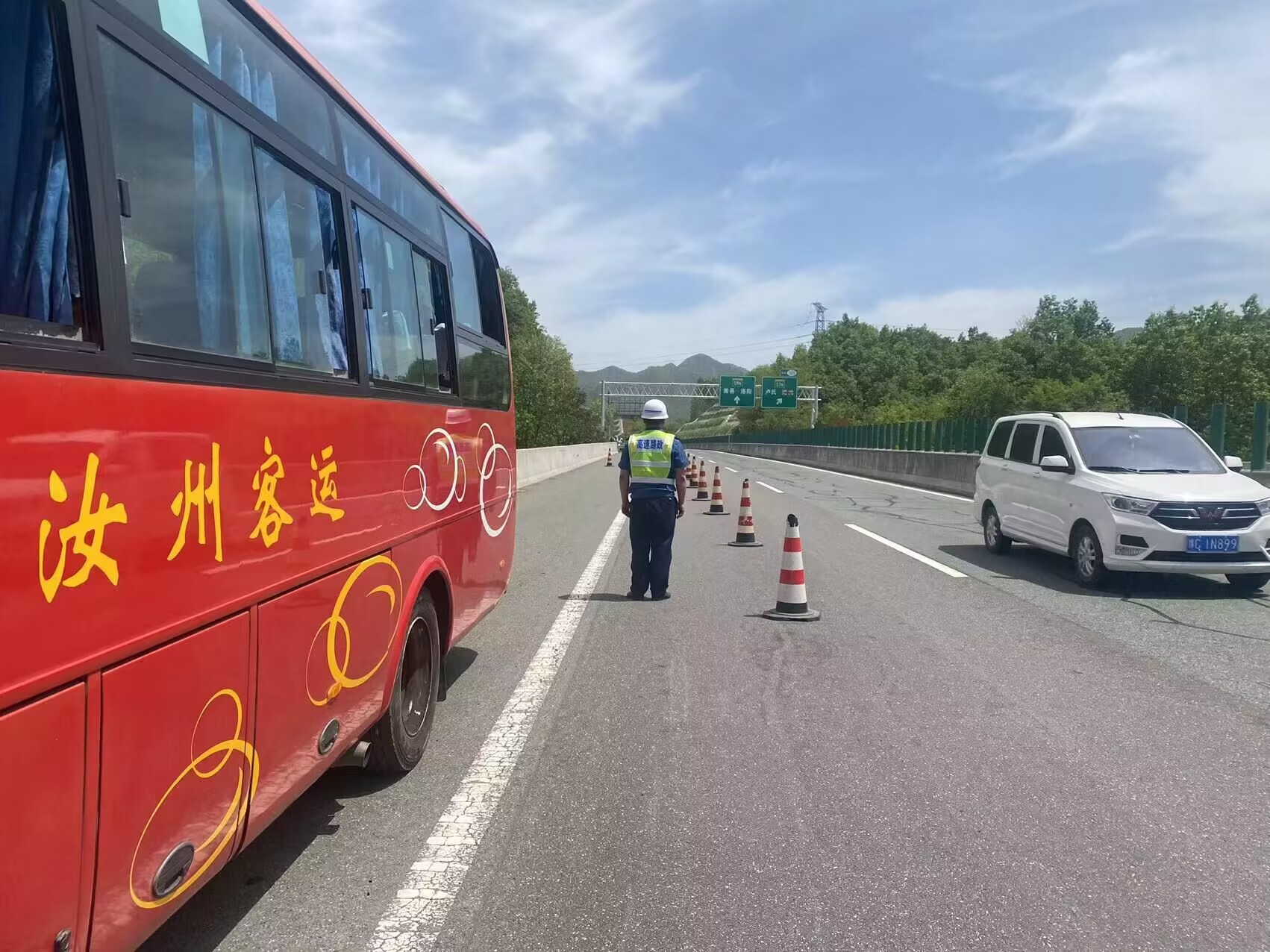 旅游客车突然爆胎 栾川高速路产暖心救助