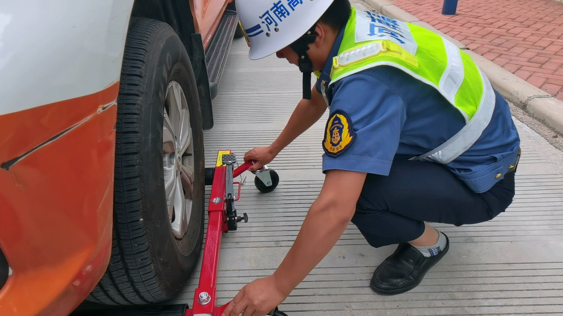 当车辆在高速公路行车时不慎发生故障或事故导致无法移动时,路产人员快速到达现场,利用“移车神器”“移动车辆,高速轮滑器具有高效、便捷的特点,达到快速将车辆移动至安全区域,为事故道路及时恢复通行提供有效保障。
