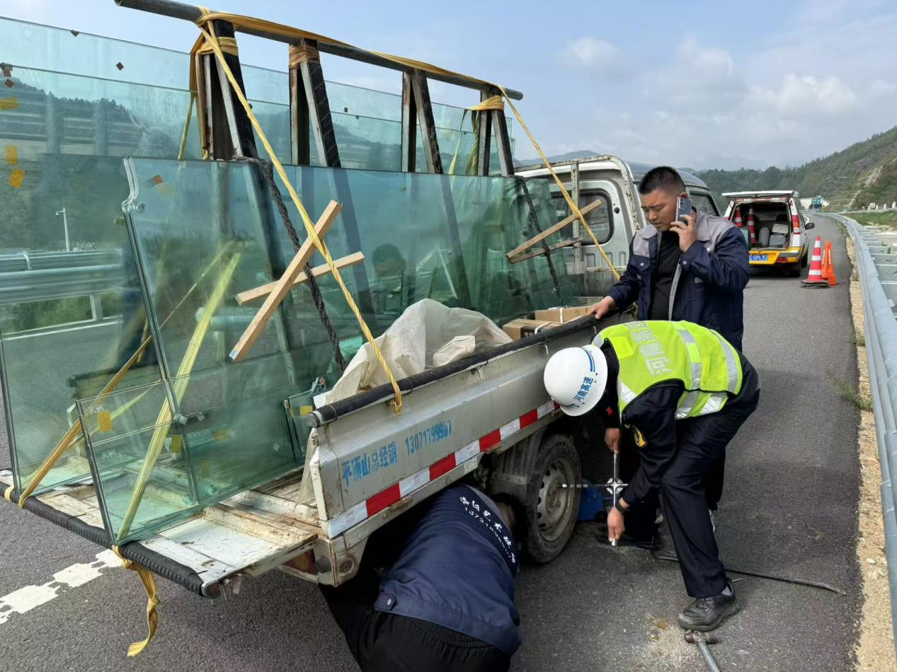 伊河源路产中队:4月21日上午,巡逻至K20+300上行发现一辆货车因爆胎滞留行车道,未放置警示标志。路产人员立即开启双闪灯,双向摆放锥形桶并上前处置。经现场勘查,驾驶员因未携带专业工具无法更换备胎。救援人员迅速划定150米安全区,一人指挥交通疏导车辆,另一人使用随车工具实施救援,同步讲解轮胎更换及行车安全知识。25分钟内完成故障处置,消除安全隐患。司乘人员对"教科书式"救援服务点赞,此次处置凸显路产队伍"快速反应+高效服务"双核能力。