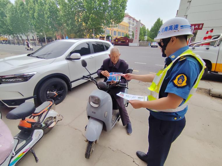 路产巡查人员通过发放宣传资料、现场以案说法宣讲、答疑解惑等形式,向群众宣传《公路安全保护条例》、《河南省高速公路条例》等法律法规,向社区群众深入解读爱路护路、保护高速公路附属设施、行人违法上高速等政策要求,引导广大群众了解、认识并支持公路路政管理,树立爱路护路意识,共同营造安全稳定的高速公路道路通行环境。