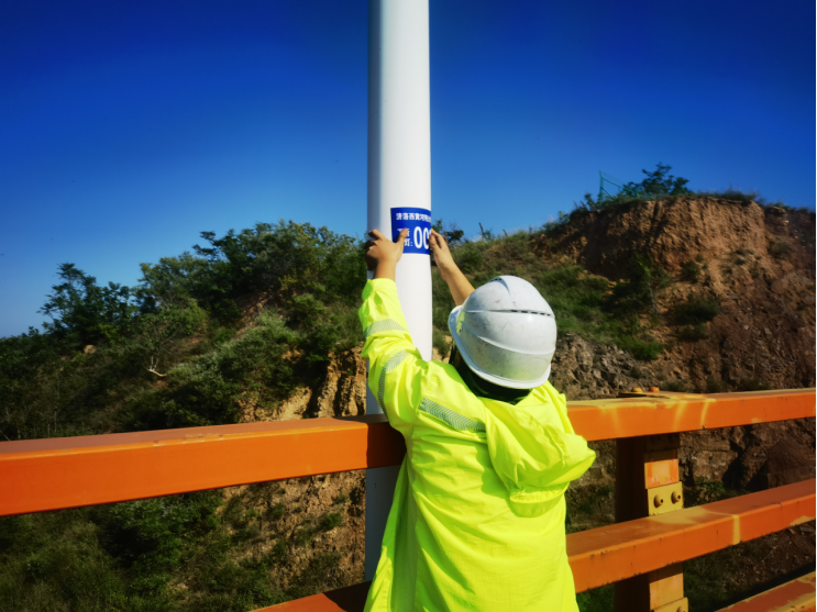 宜阳机电运维中队为黄河特大桥中杆灯贴“数字身份证”