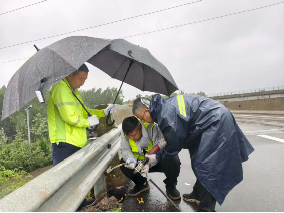 9月2日晚至3日,洛阳地区普降中雨,洛阳东机电运维中队值班人员在9月3日7时10分,发现所辖连霍高速洛阳段K724+355—K727+440公里处共有4路道路监控无图像,初步判断为供电故障。为及时修复故障,中队立即启动应急预案,组织抢修小组第一时间前往故障地点,对道路摄像机供电线路进行沿线实地排查。此时雨势未减,抢修小组面对路肩湿滑泥泞、雨幕遮挡视线等不利条件,迅速查明故障点位,并组织对故障线缆进行修复和防水处理,经过近5小时作业,于在中午12时许完成抢修任务,恢复4路道路监控图像正常上传,为高速公路安全畅行提供坚强保障。