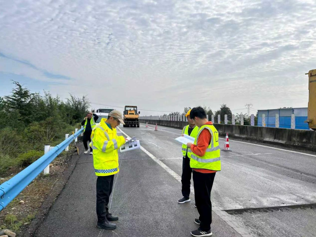 施工作业过程中,严格按照路面维修技术规范,确保修复后的路面平整度与强度达标。同时,合理规划作业区域,设置警示标识、安排专人疏导交通,确保养护作业安全可控,实现“养护施工”与“道路畅通”的高效平衡。截至10月13日,洛卢段完成路面铣刨1.1㎞,沥青路面摊铺600m,有效改善了雨后道路通行条件,筑牢安全通行防线,充分展现高速养护队伍的专业担当与路况品质。