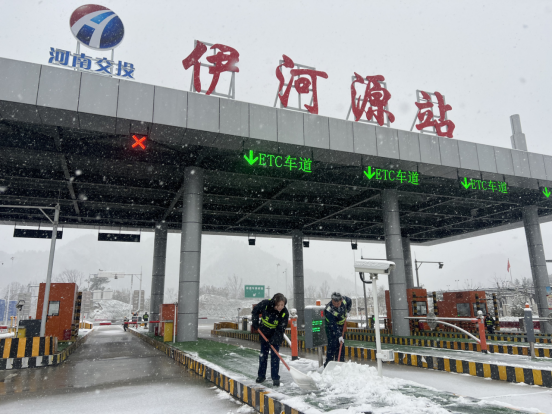 降雪路段,各收费站迅速组织人员、调配物资,高效开展除雪保畅工作。鸡冠洞站员工分工协作,快速清理收费广场、车道等重点区域积雪;伊河源站同步推进积雪清扫与融雪剂精准撒布;龙峪湾站迅速组织当班人员,以最快速度完成收费区域除雪;天河大峡谷站全员化身“除雪卫士”,各站全力清除路面积雪积冰,有效保障了车辆通行条件与收费站区秩序。