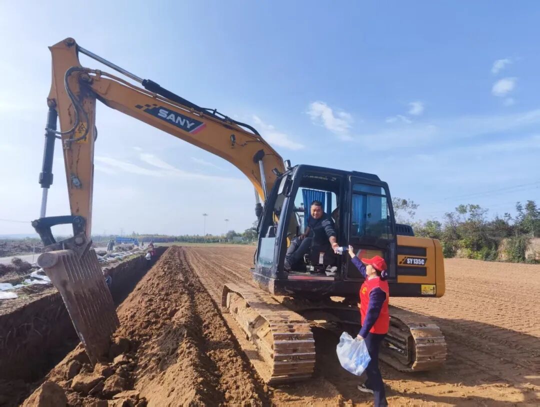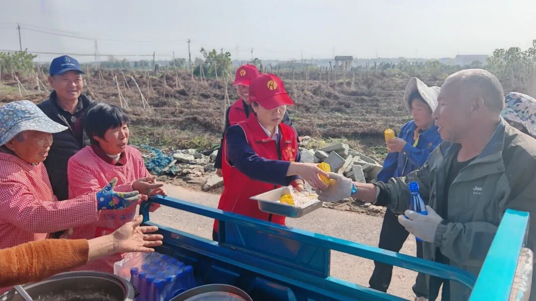 志愿者们带着提前准备好的饭菜和饮用水抵达种植基地后,立刻分工协作投入工作。一部分志愿者为忙碌的农户送上饮用水、玉米及西湖牛肉羹,关切询问劳作强度与实际需求,用贴心服务驱散大家的疲惫;另一部分志愿者挽起衣袖、俯下身子,协助农户对新采挖的山药进行整理、分拣和捆扎。同时,现场主动对接商超平台搭建产销桥梁,帮助种植户拓宽销售路径。田间地头里,“志愿红”与金黄的山药相映成趣,勾勒出一幅党群同心、共助丰收的鲜活画卷。