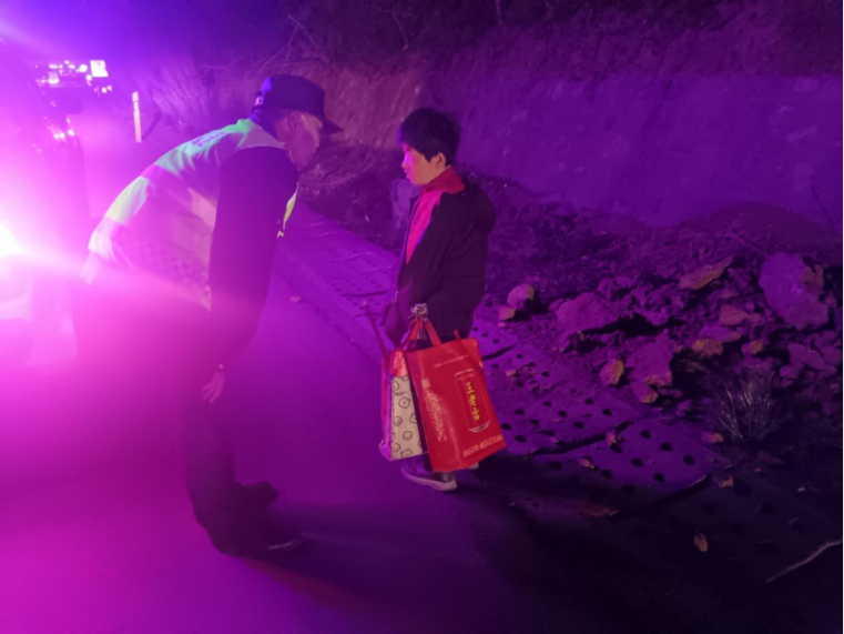 3月29日22时许,在连霍高速新安段K730上行方向应急车道内,一名拾荒老人身处车流密集路段,十分危险。正在进行夜间巡查的新安路产外勤中队工作人员发现后,紧急停车、设置警示,迅速将老人搀扶至安全区域并转移至新安西收费站。为帮助老人回家,路产人员立即启动路警联动机制,协同高速交警、辖区派出所,快速核实身份、联系家属。经多部门高效协作,仅用1小时便确认信息并联系到其家人,随后合力将老人安全护送回家,以实际行动守护了群众生命安全。