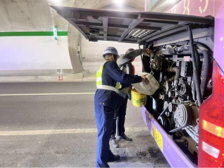 3月29日10时许,中队队员在日常巡逻过程中,行至老界岭隧道内时,发现一辆客运车辆停靠在安全区域,司乘人员在车旁焦急等候。队员立即停车做好现场安全防护,上前询问,得知该车行驶中因水箱缺水无法继续前行,且车上无备用水源。巡查队员了解后,一人留守现场维护交通秩序、安抚司乘情绪,一人快速返回巡查车取来备用水及相关工具,协助司机为车辆补充水源,同时细致告知其后续出行前需检查车辆水箱状况,避免类似情况发生。短短十余分钟,车辆便恢复正常,司乘人员对巡查队员的及时帮扶再三致谢。