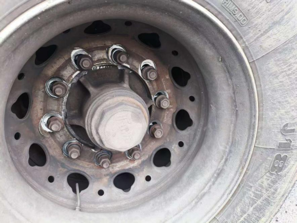 当日巡逻中,中队工作人员发现一号牌为豫N牌照D型半挂货车后挂三连轴第一轴轮胎异常摇摆,存在随时脱落风险。凭借丰富经验与职业敏感,队员即刻判断系轮胎固定螺栓松动断裂所致,处置不及时将引发恶性事故。危急时刻,队员分工协作、果断处置:一人驾车紧贴货车左后方做好防护拦截,一人开启警笛、用扩音器喊话示警,引导驾驶人驶入紧急停车带。经一分钟左右警示,货车安全停靠。经检查,该轮胎10颗固定螺丝全部松动,仅2颗勉强受力,其余螺栓已完全断裂,隐患极为严峻。