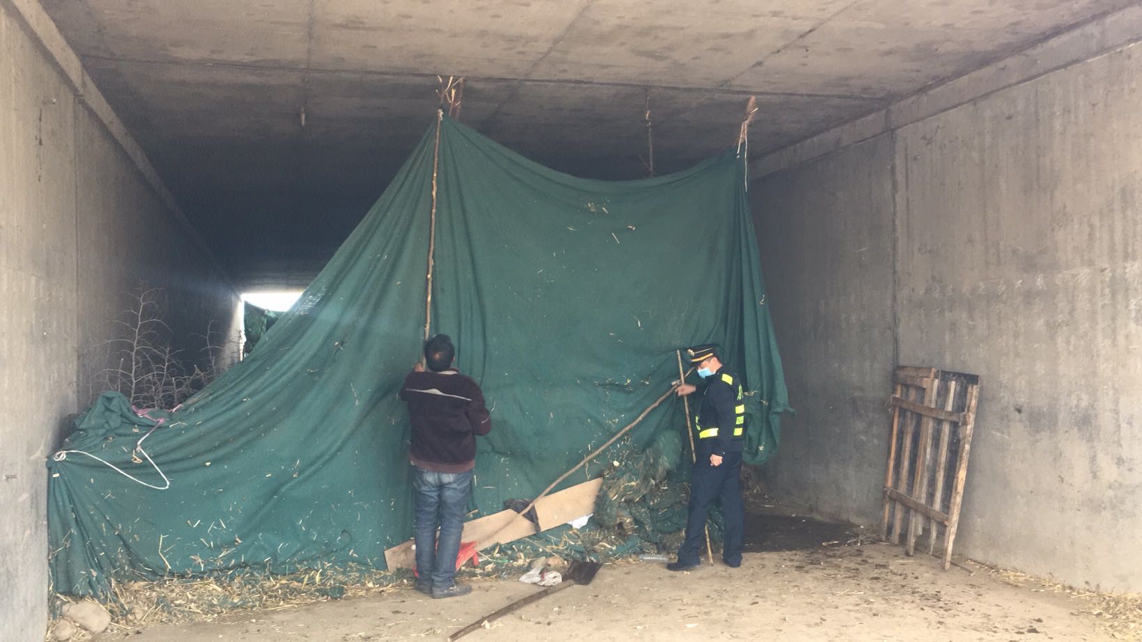 近日,洛宁路政大队在巡逻至洛卢高速K71+900时,发现了涵洞内有一处村民私自搭建的牛棚。经询问得知,由于疫情期间村内禁止牲畜进出,涧口乡涧口村村民曲在高速公路涵洞内搭建牛棚养牛 。在高速公路桥涵内的违章搭建严重影响道路桥涵安全,存放的易燃物一旦着火对桥涵结构安全造成严重威胁。